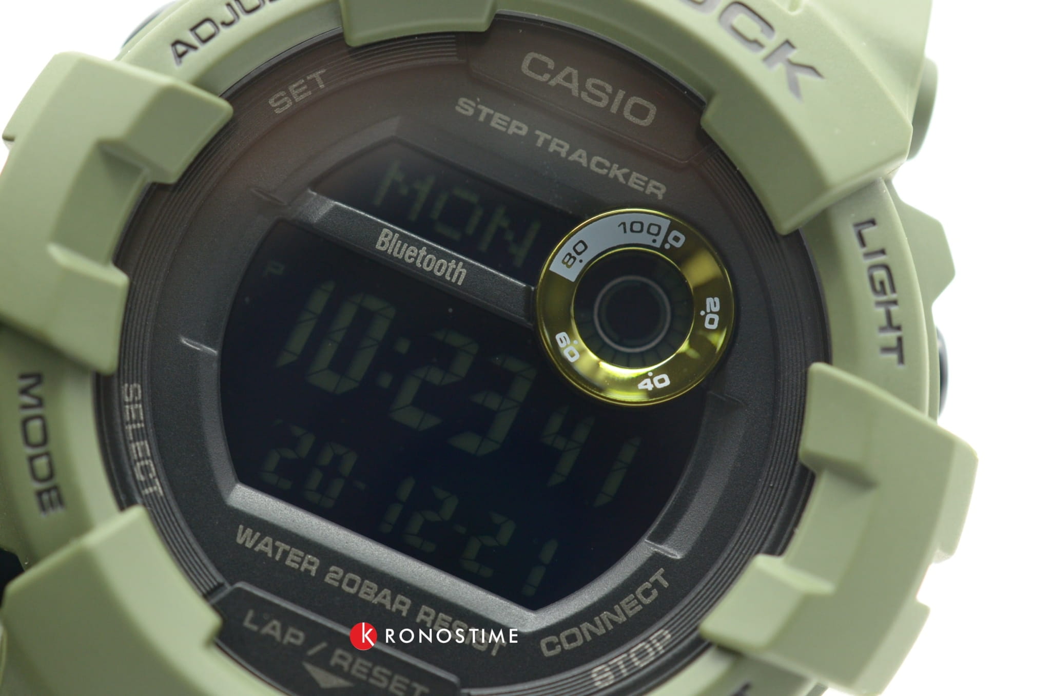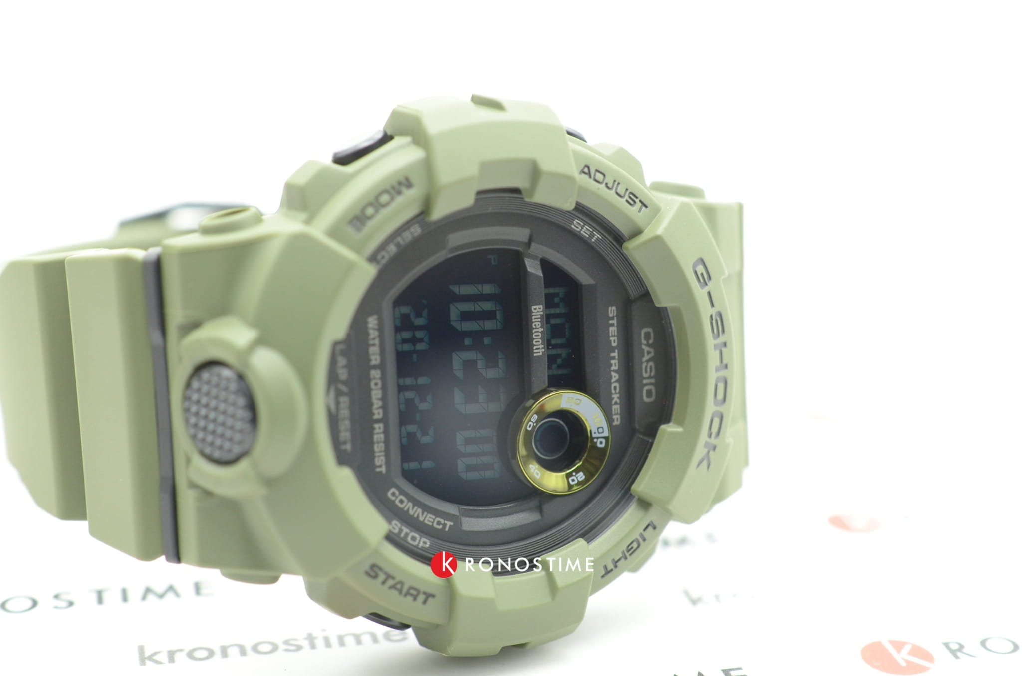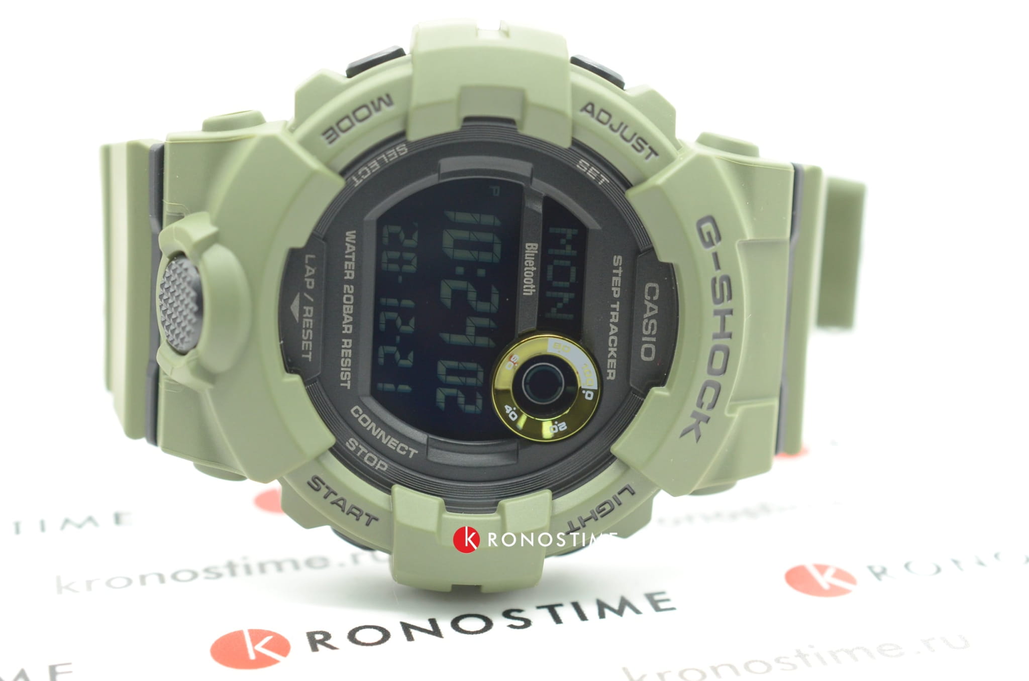 Это не просто стильный и практичный аксессуар, модель цвета хаки является идеальным помощником в правильной организации тренировок. Часы для фитнеса и бега оснащены шагомером, измеряющим их в количестве от 0 до 999999, многофункциональным таймером, секундомером с памятью на 200 результатов. С помощью технологии BluetoothBluetoothСовременная технология, позволяющая синхронизировать часы с телефоном и переносить данные. Часы с Bluetooth расширяют возможности вашего смартфона и делают его использование ещё более удобным. данные о физической активности могут передаваться и анализироваться в вашем смартфоне, для этого было разработано приложение G-Shock Connected Phone. Кварцевый механизм японского производства. Батарейка рассчитана на 3 года работы. Ударопрочный корпусУдаропрочный корпусМеханизм заключён в корпус, выполненный из современных материалов, устойчивых к ударам, механическим повреждениям и падению с высоты: инновационный пластик, карбон, нержавеющая сталь, титан. из полимерного материала. Минеральное стекло. Водостойкость до 20 бар. Циферблат со светодиодной подсветкойСветодиодная подсветкаСветодиодная или LED-подсветка обеспечивает появление яркого холодного свечения за счёт LED-элементов - маленьких лампочек. Они потребляют минимальное количество энергии, чаще всего можно встретить 1 светодиод, в нижней части циферблата., стрелки с люминесцентным покрытиемЛюминесцентное покрытиеПозволяет считывать показания времени в темноте. Производители наносят на стрелки, часовые индексы, безель или поверхность циферблата светонакопительный состав, дающий холодное свечение.. Будильник, мировое времяМировое время Полезное часовое усложнение, отображающее время в основных городах и известных областях по всему миру, оно связано с часовыми поясами, удобно для путешественников и бизнесменов. , календарь до 2099 года, функция поиска телефона, хронографХронографФункция позволяет измерять отрезки времени с особой точностью: часы, минуты, секунды. Верным признаком хронографа является наличие на циферблате 3 дополнительных окошек-счётчиков.. Габариты: 54,1 x 48,6 x 15,5 мм.