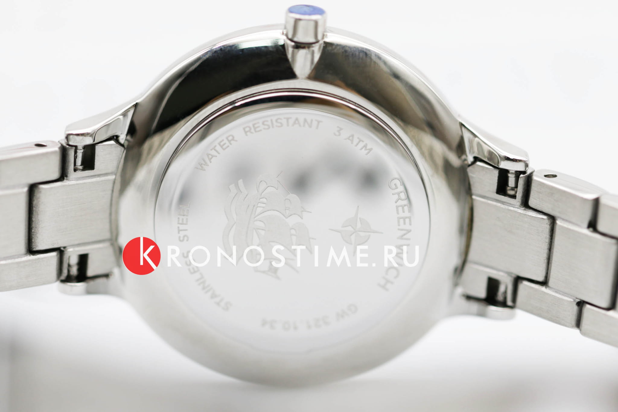 Женские английские часы с минеральным стекломМинеральное стеклоМинеральное стекло представляет собой искусственно выращенный минерал кварца. Такое стекло отличается особой устойчивостью к повреждениям и царапинам. Уступает по некоторым качествам сапфировому стеклу. Greenwich Wind GW 321.10.34, кварцевый механизм с высокой точностью. Класс водозащиты: 30 метров, позволит защитить корпус от случайных брызг или капель дождя. Корпус часов изготовлен из стали серебристого цвета. Браслет с раскладывающейся застёжкойРаскладная застёжкаТакой тип застёжки используется только на браслетах из металла. Она никогда не раскрывается полностью, происходит разделение на 2 и более частей. Раскладывающая застёжка снизит вероятность потери часов к минимуму.. Циферблат с метками в виде точек.
