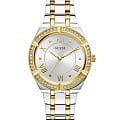 Женские кварцевые часы с минеральным стекломМинеральное стеклоМинеральное стекло представляет собой искусственно выращенный минерал кварца. Такое стекло отличается особой устойчивостью к повреждениям и царапинам. Уступает по некоторым качествам сапфировому стеклу. Guess GW0033L4, кварцевый механизм с высокой точностью. Класс водозащиты: 30 метров, позволит защитить корпус от случайных брызг или капель дождя. Корпус часов изготовлен из стали. Стальной браслет на раскладной застёжкеРаскладная застёжкаТакой тип застёжки используется только на браслетах из металла. Она никогда не раскрывается полностью, происходит разделение на 2 и более частей. Раскладывающая застёжка снизит вероятность потери часов к минимуму. с IP-покрытиемIP-покрытиеМетод ионного напыления. Демонстрирует повышенную устойчивость к истиранию, окислению и химическим веществам. Под воздействием высокого давления и температуры около 1500°C молекулы металла надёжно соединяются с частицами корпуса часов.. БезельБезельВнешний ободок, закрепляющий стекло. В спортивных часах так называется поворотное кольцо с делениями на циферблате, выполняет роль таймера – замеряет отрезки времени на шкале. Неподвижный безель – элемент декора. Однонаправленно вращающийся безель на дайверских часах позволяет фиксировать моменты погружения и выныривания на поверхность. с IP-покрытиемIP-покрытиеМетод ионного напыления. Демонстрирует повышенную устойчивость к истиранию, окислению и химическим веществам. Под воздействием высокого давления и температуры около 1500°C молекулы металла надёжно соединяются с частицами корпуса часов. инкрустирован кристаллами.