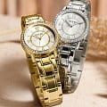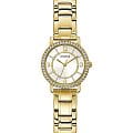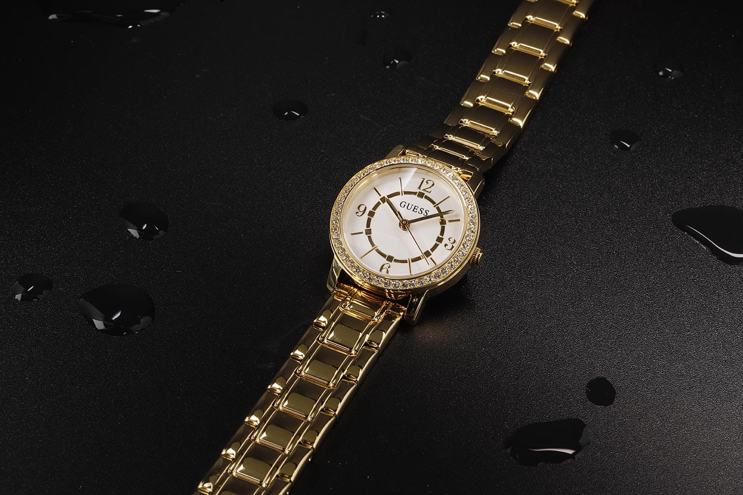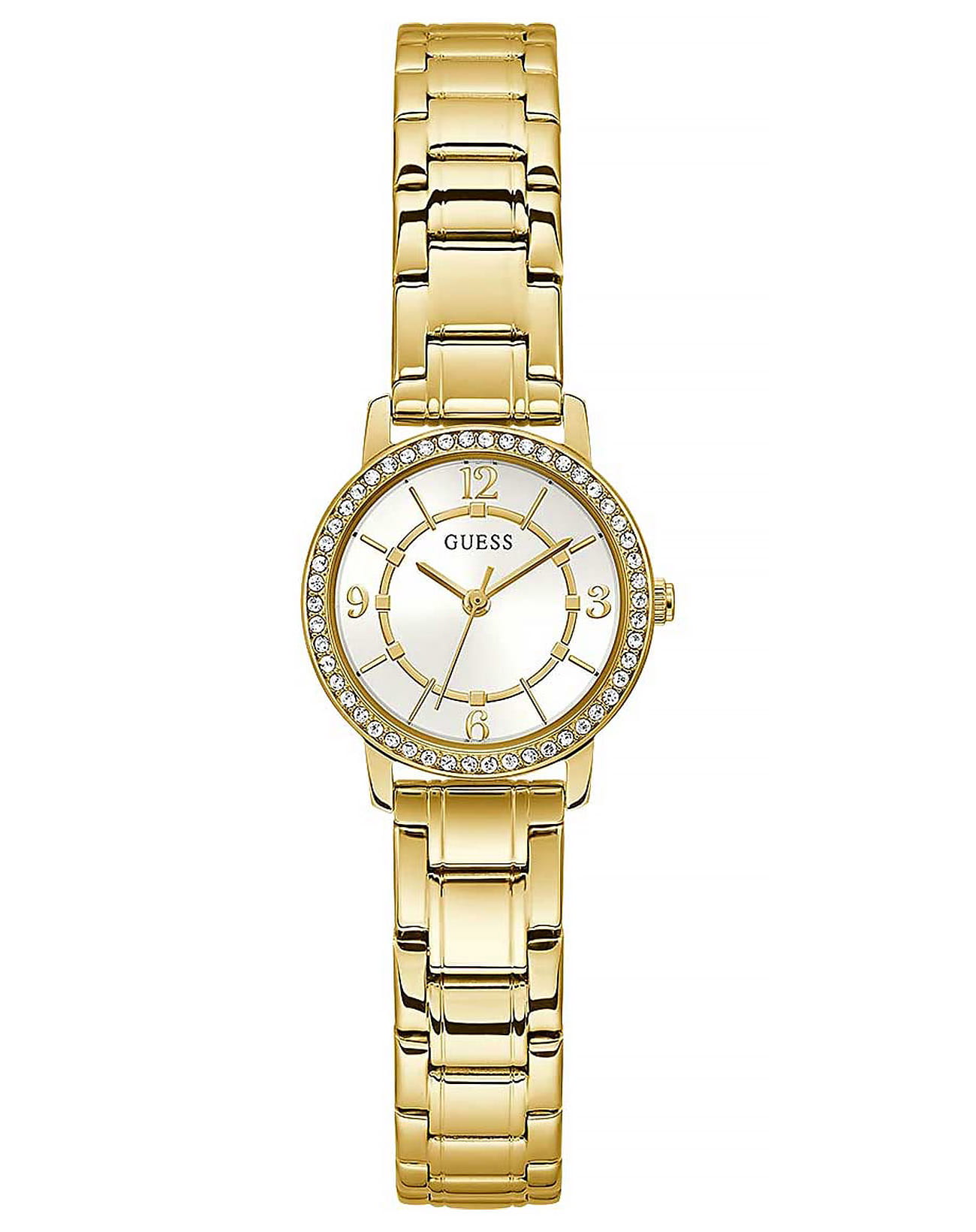 Женские наручные часы Guess Dress Steel GW0468L2 с минеральным стекломМинеральное стеклоМинеральное стекло представляет собой искусственно выращенный минерал кварца. Такое стекло отличается особой устойчивостью к повреждениям и царапинам. Уступает по некоторым качествам сапфировому стеклу., кварцевый механизм с высокой точностью. Класс водозащиты: 30 метров, позволит защитить корпус от случайных брызг или капель дождя. Корпус часов изготовлен из стали с IP-покрытиемIP-покрытиеМетод ионного напыления. Демонстрирует повышенную устойчивость к истиранию, окислению и химическим веществам. Под воздействием высокого давления и температуры около 1500°C молекулы металла надёжно соединяются с частицами корпуса часов.. Браслет с раскладной застёжкойРаскладная застёжкаТакой тип застёжки используется только на браслетах из металла. Она никогда не раскрывается полностью, происходит разделение на 2 и более частей. Раскладывающая застёжка снизит вероятность потери часов к минимуму..