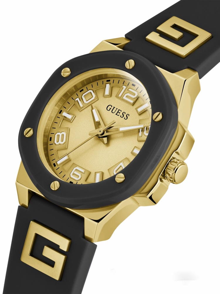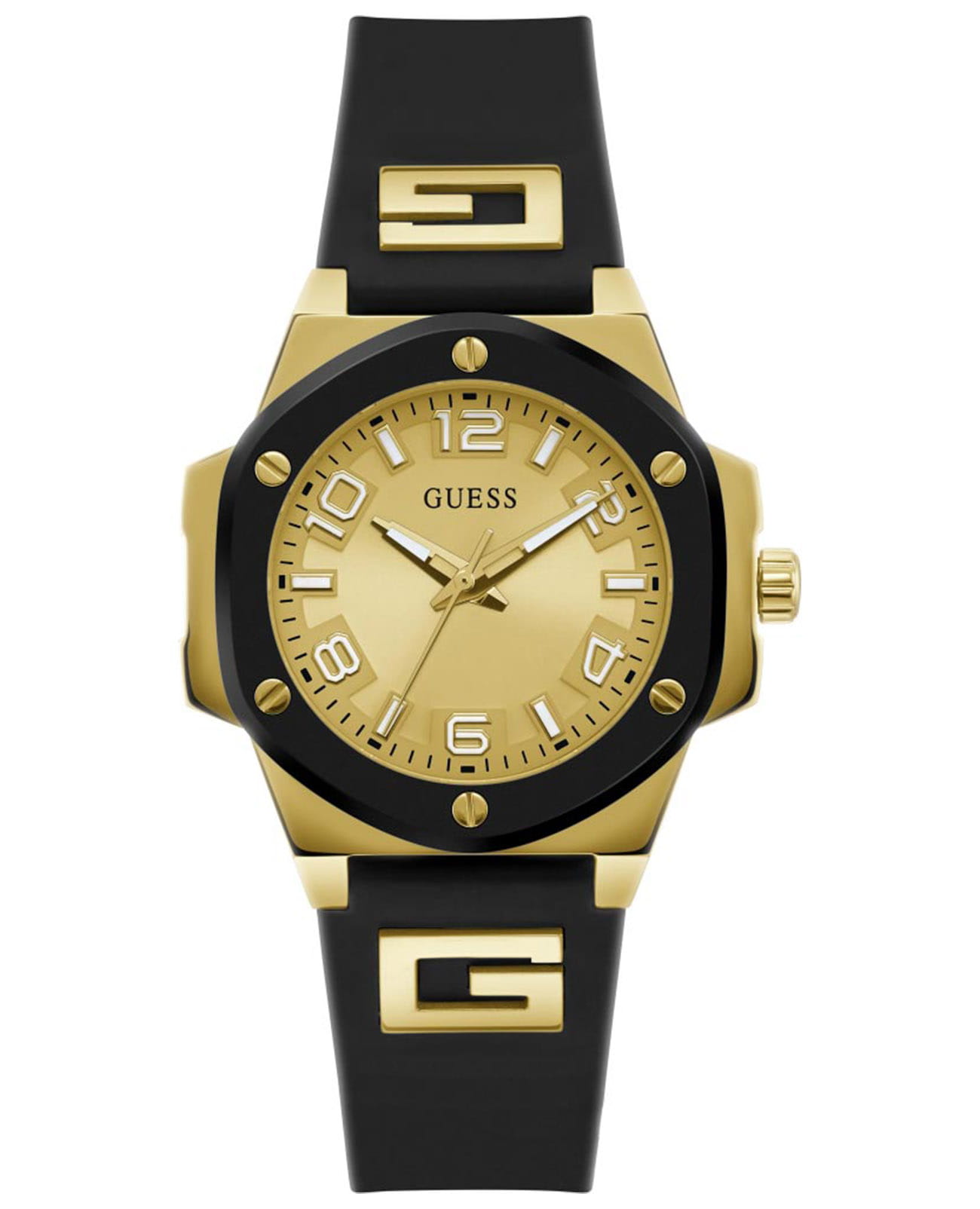 Женские наручные часы Guess Sport Steel GW0555L2 с минеральным стекломМинеральное стеклоМинеральное стекло представляет собой искусственно выращенный минерал кварца. Такое стекло отличается особой устойчивостью к повреждениям и царапинам. Уступает по некоторым качествам сапфировому стеклу., кварцевый механизм с высокой точностью. Стрелки и метки с люминесцентным покрытиемЛюминесцентное покрытиеПозволяет считывать показания времени в темноте. Производители наносят на стрелки, часовые индексы, безель или поверхность циферблата светонакопительный состав, дающий холодное свечение.. Класс водозащиты: 50 метров, позволит защитить корпус от случайных брызг или капель дождя. Корпус часов и безельБезельВнешний ободок, закрепляющий стекло. В спортивных часах так называется поворотное кольцо с делениями на циферблате, выполняет роль таймера – замеряет отрезки времени на шкале. Неподвижный безель – элемент декора. Однонаправленно вращающийся безель на дайверских часах позволяет фиксировать моменты погружения и выныривания на поверхность. изготовлены из стали с IP-покрытиемIP-покрытиеМетод ионного напыления. Демонстрирует повышенную устойчивость к истиранию, окислению и химическим веществам. Под воздействием высокого давления и температуры около 1500°C молекулы металла надёжно соединяются с частицами корпуса часов.. Силиконовый ремешок с классической застежкой.