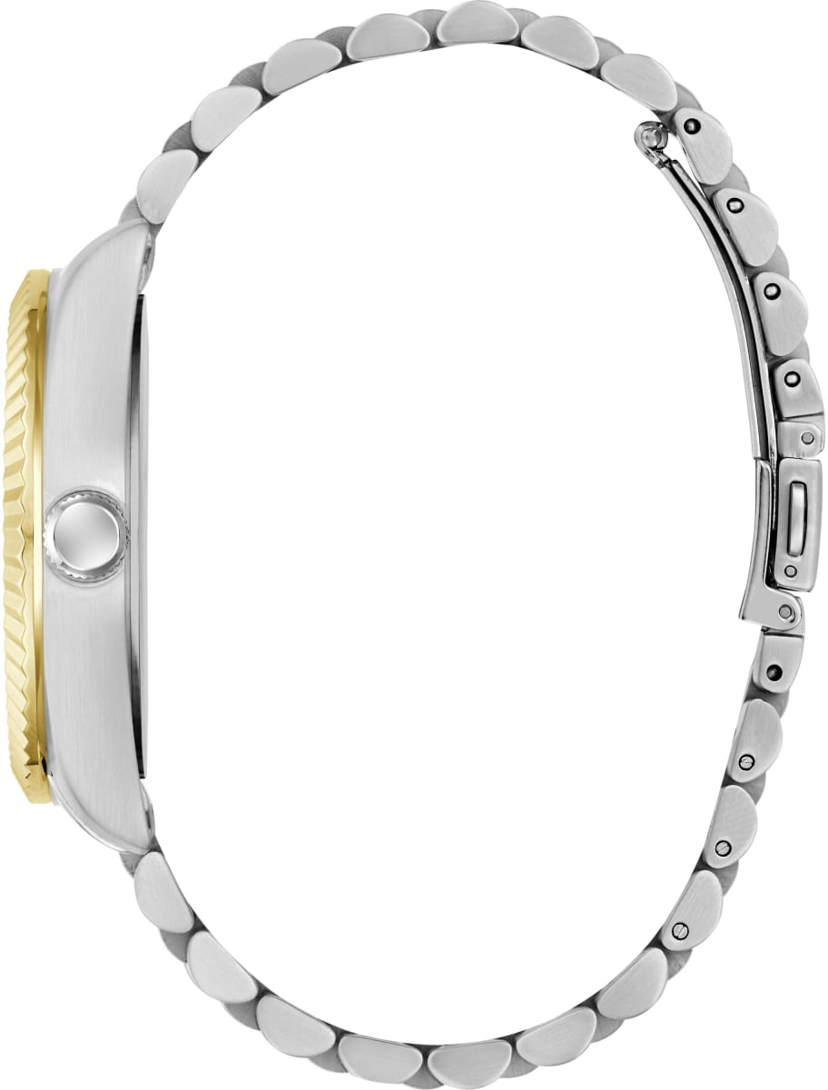 Мужские наручные часы Guess Dress Jaden GW0977G4 – это сочетание элегантности и современного стиля. Изысканные часы оснащены надежным кварцевым механизмом, который обеспечивает точность хода. Корпус часов выполнен из нержавеющей стали с безелемБезельВнешний ободок, закрепляющий стекло. В спортивных часах так называется поворотное кольцо с делениями на циферблате, выполняет роль таймера – замеряет отрезки времени на шкале. Неподвижный безель – элемент декора. Однонаправленно вращающийся безель на дайверских часах позволяет фиксировать моменты погружения и выныривания на поверхность. с IP-покрытиемIP-покрытиеМетод ионного напыления. Демонстрирует повышенную устойчивость к истиранию, окислению и химическим веществам. Под воздействием высокого давления и температуры около 1500°C молекулы металла надёжно соединяются с частицами корпуса часов. диаметром 42 мм и толщиной 11 мм, придающий модели особый характер. Циферблат оснащен метками в виде штрихов. Вынесенный циферблат с 24-х часовым указателем времени. Окошко даты в позиции 3 часов. Люминесцентное покрытиеЛюминесцентное покрытиеПозволяет считывать показания времени в темноте. Производители наносят на стрелки, часовые индексы, безель или поверхность циферблата светонакопительный состав, дающий холодное свечение. на стрелках и метках обеспечивает отличную видимость в темноте. Стильный стальной браслет с IP-покрытиемIP-покрытиеМетод ионного напыления. Демонстрирует повышенную устойчивость к истиранию, окислению и химическим веществам. Под воздействием высокого давления и температуры около 1500°C молекулы металла надёжно соединяются с частицами корпуса часов. с раскладной застежкойРаскладная застёжкаТакой тип застёжки используется только на браслетах из металла. Она никогда не раскрывается полностью, происходит разделение на 2 и более частей. Раскладывающая застёжка снизит вероятность потери часов к минимуму. гарантирует комфортное ношение и надежную фиксацию. Минеральное стеклоМинеральное стеклоМинеральное стекло представляет собой искусственно выращенный минерал кварца. Такое стекло отличается особой устойчивостью к повреждениям и царапинам. Уступает по некоторым качествам сапфировому стеклу. защищает циферблат от царапин, а водозащита 50WR предохраняет часы от случайных брызг и дождя. Эта модель станет отличным выбором для тех, кто ценит стиль и функциональность в одном аксессуаре.