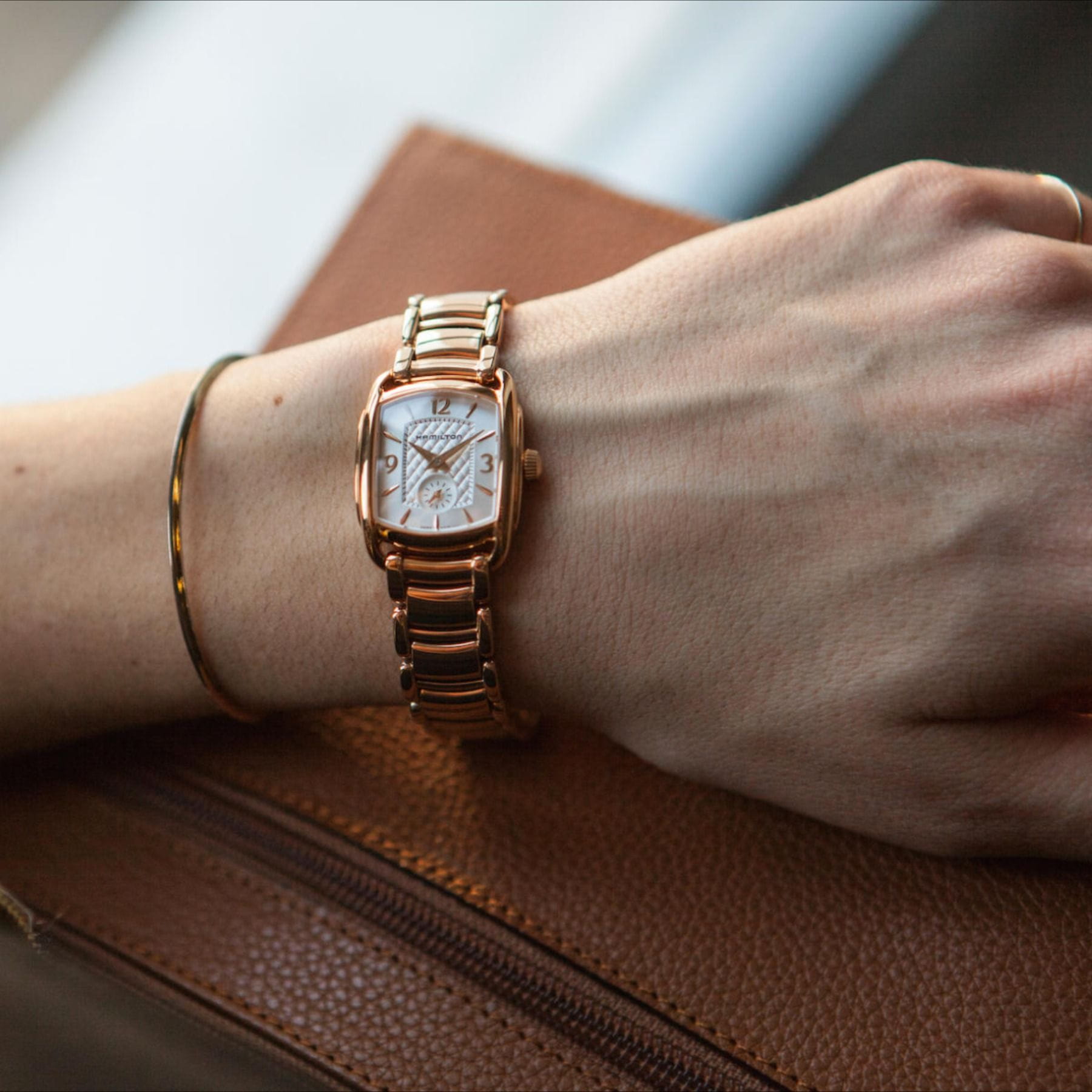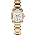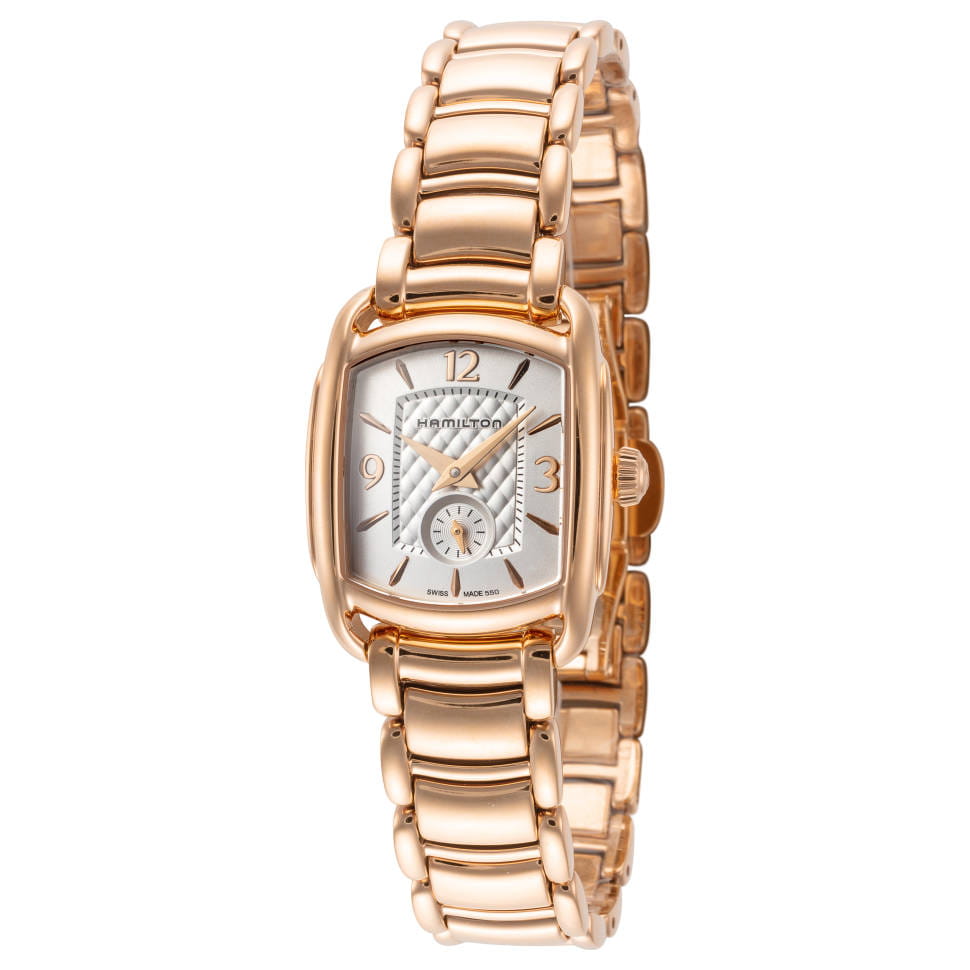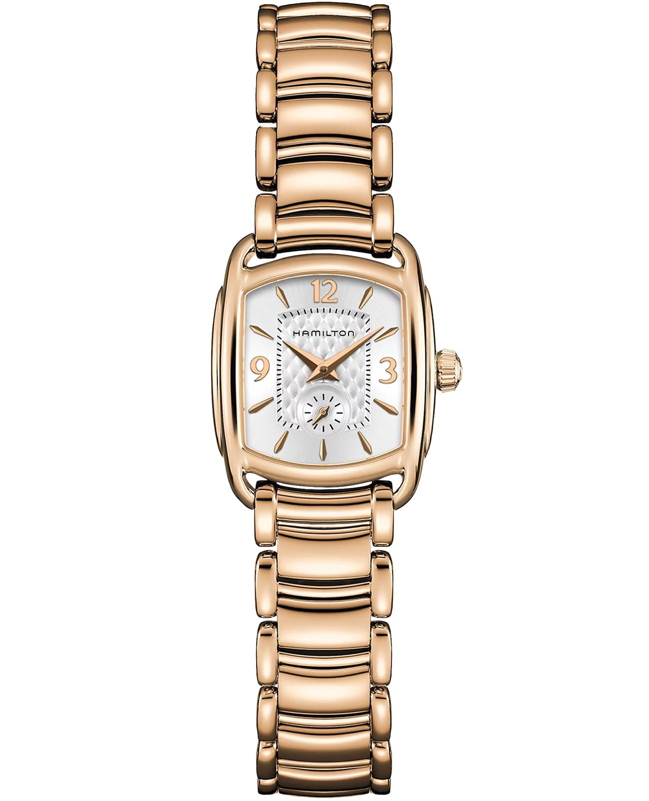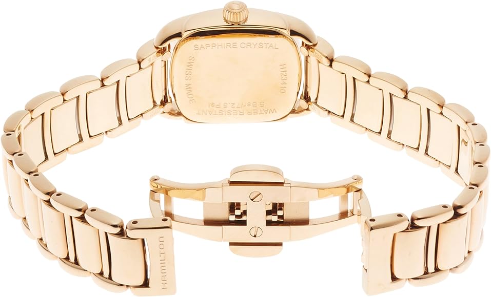 Женские наручные часы Hamilton American Classics Lady H12341155. Корпус и браслет часов изготовлены из нержавеющей стали с PVD-покрытиемPVDУльтратонкое покрытие наносится в технике вакуумного напыления, сочетает в себе нитрид титана особой прочности со слоем золота или оксида хрома. Несёт в себе декоративную или защитную функцию.. Сапфировое стеклоСапфировое стеклоПрочный и надёжный материал из кристалла сапфира синтетического происхождения, характеризующийся особой твёрдостью и устойчивостью к царапинам и повреждениям. с антибликовым покрытием. Стальной браслет на застёжке-бабочке с кнопкамиЗастёжка "бабочка"Такой вид застёжки дополняется предохранителями, помогающими избежать случайного раскрытия браслета. Обладают изящным исполнением. . Уровень влагозащиты: 50 метров, позволит защитить корпус от случайных брызг или капель дождя.