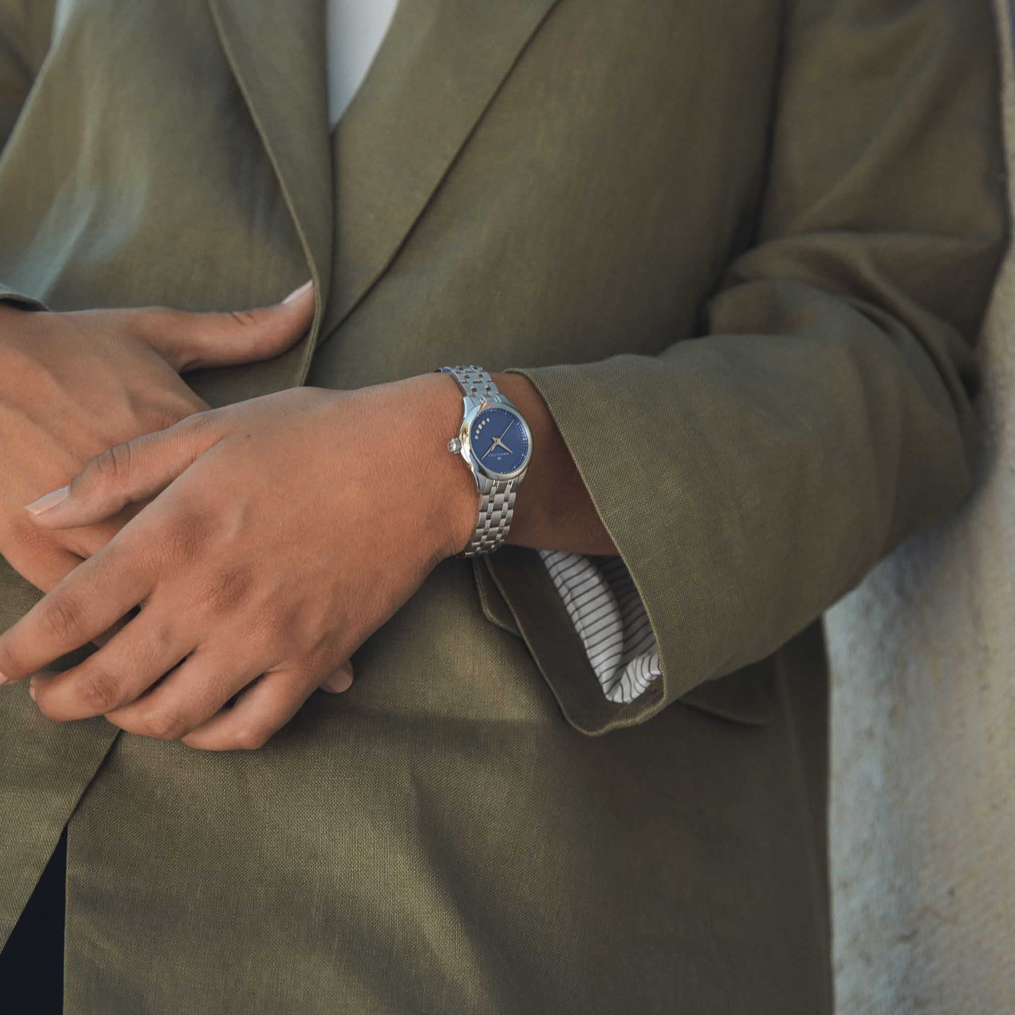 Плавные линии, насыщенные цвета и искорки сочетаются в поэтическом дизайне нашего Jazzmaster Lady Quartz. В сочетании с изящным браслетом, 26-миллиметровый перламутровый циферблат придает непринужденную изысканность днем или ночью. Кварцевый механизм с высокой точностью. Сапфировое стеклоСапфировое стеклоПрочный и надёжный материал из кристалла сапфира синтетического происхождения, характеризующийся особой твёрдостью и устойчивостью к царапинам и повреждениям. устойчивое к появлению царапин, обладающее высокой прозрачностью. Циферблат украшен 5-ью бриллиантами. Класс водозащиты: 50 метров, позволит защитить корпус от случайных брызг или капель дождя. Корпус часов изготовлен из нержавеющей стали. Браслет с застёжкой «бабочка» с кнопкамиЗастёжка "бабочка"Такой вид застёжки дополняется предохранителями, помогающими избежать случайного раскрытия браслета. Обладают изящным исполнением. .