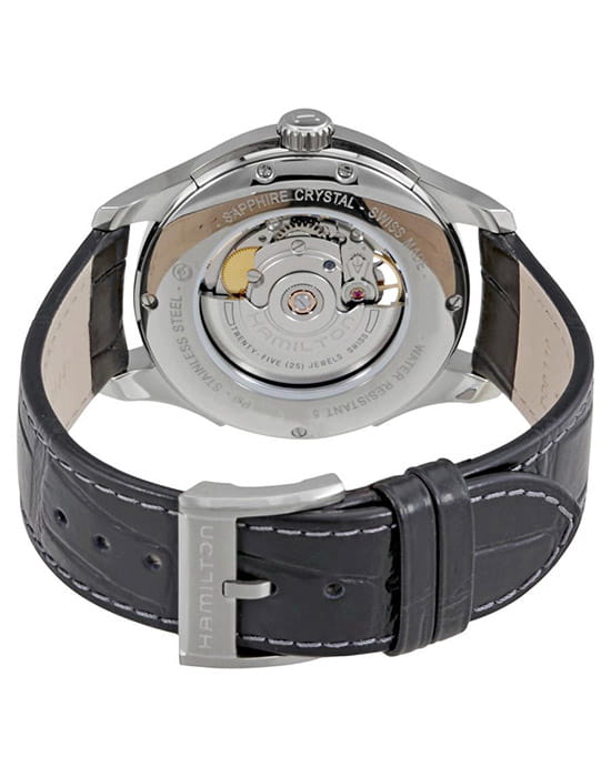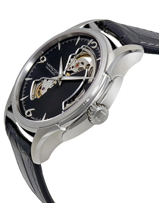 Мужские механические швейцарские часы Hamilton Jazzmaster Open Heart Auto H32565735, автоматический механизм с высокой точностью. Сапфировое стеклоСапфировое стеклоПрочный и надёжный материал из кристалла сапфира синтетического происхождения, характеризующийся особой твёрдостью и устойчивостью к царапинам и повреждениям. устойчивое к появлению царапин, обладающее высокой прозрачностью. Класс водозащиты: 50 метров, позволит защитить корпус от случайных брызг или капель дождя. Корпус часов изготовлен из нержавеющей стали. Стрелки с люминесцентным покрытиемЛюминесцентное покрытиеПозволяет считывать показания времени в темноте. Производители наносят на стрелки, часовые индексы, безель или поверхность циферблата светонакопительный состав, дающий холодное свечение..