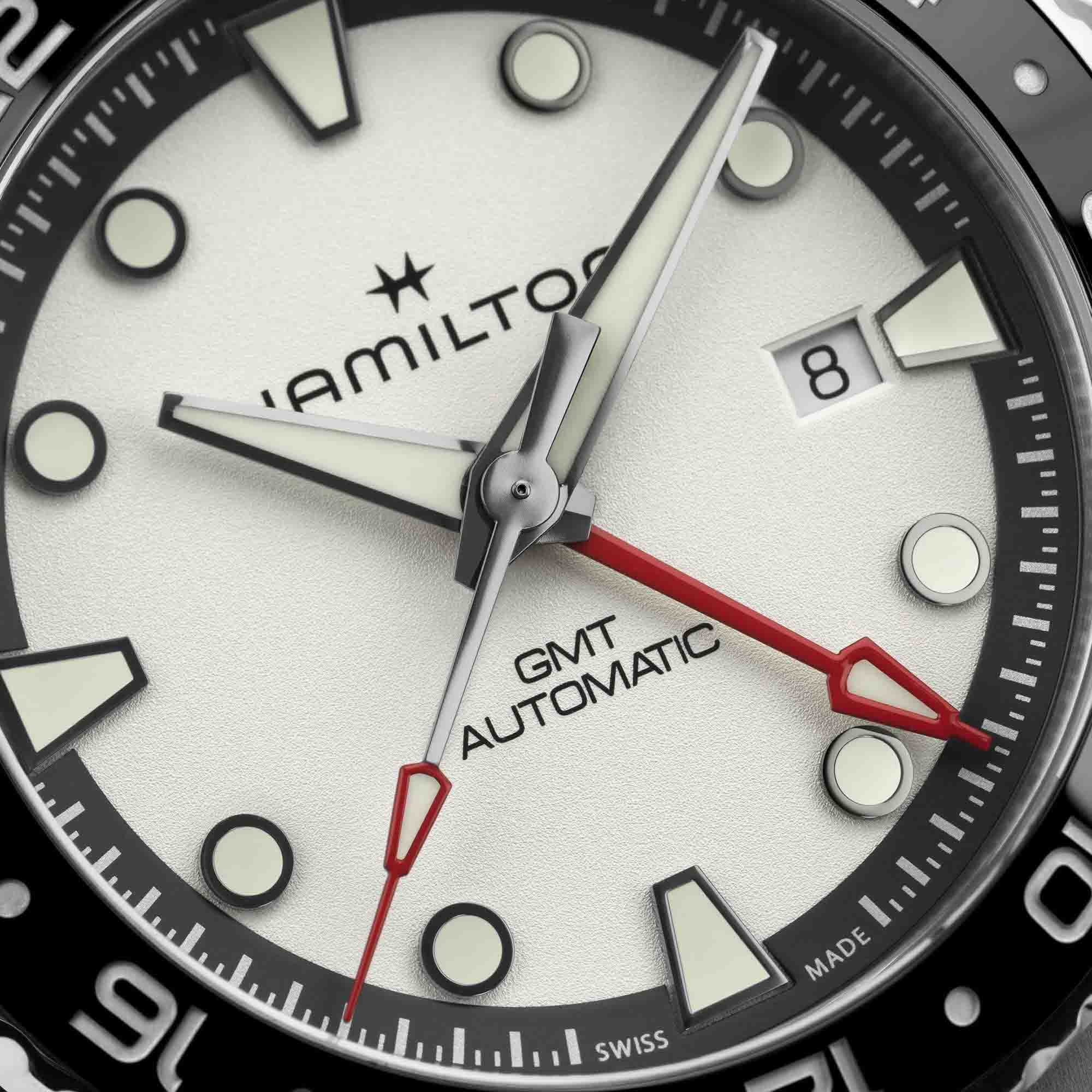 Часы Hamilton Khaki Navy Automatic GMT H82555150 созданы специально для современных мореплавателей и ценителей путешествий. Модель сочетает в себе функциональность, прочность и стильный дизайн, подчёркивающий дух приключения. Корпус из нержавеющей стали диаметром 43 мм , с завинчивающейся головкой и водозащитой выдерживает даже экстремальные условия эксплуатации. Благодаря запасу хода 80 часов часы не требуют частого завода и готовы к длительным поездкам. Циферблат с зернистой текстурой дополнен люминесцентными индексами Super-LumiNova® люминесцентным покрытиемЛюминесцентное покрытиеПозволяет считывать показания времени в темноте. Производители наносят на стрелки, часовые индексы, безель или поверхность циферблата светонакопительный состав, дающий холодное свечение. и красной стрелкой, обозначающей второй часовой пояс второй часовой поясВторой часовой поясФункция, позволяющая отображать время двух часовых поясов одновременно., что делает модель идеальной для путешествий. Также на циферблате отображаются дата и день недели. Защиту циферблата обеспечивает сапфировое стекло сапфировое стеклоСапфировое стеклоПрочный и надёжный материал из кристалла сапфира синтетического происхождения, характеризующийся особой твёрдостью и устойчивостью к царапинам и повреждениям. с антибликовым покрытием антибликовым покрытиемАнтибликовое покрытиеСлой оксида металла в 0,13-0,3 микрон, благодаря которому стекло часов не бликует и не отражает свет. Антибликовое покрытие уменьшает отражение света в 10 раз, обеспечивая отличную читаемость показателей циферблата., а браслет из нержавеющей стали шириной 22 мм оснащён раскладной застёжкойРаскладная застёжкаТакой тип застёжки используется только на браслетах из металла. Она никогда не раскрывается полностью, происходит разделение на 2 и более частей. Раскладывающая застёжка снизит вероятность потери часов к минимуму. 20 мм для удобного ношения. Механизм H-14 — автоматический калибр с технологией Nivachron™ Nivachron™Nivachron™Специально разработанный инновационный сплав Nivachron™ повышает устойчивость часов к воздействию магнитных полей., обеспечивающей повышенную устойчивость к магнитному воздействию. Это гарантирует точность и надёжность даже в сложных условиях. Вес — оптимальный для повседневного использования. Модель входит в текущую коллекцию Khaki Navy , разработанную с акцентом на морское наследие и функциональность. Это не просто аксессуар, а верный спутник в любом путешествии, сочетающий швейцарское качество, прочность и универсальный стиль.