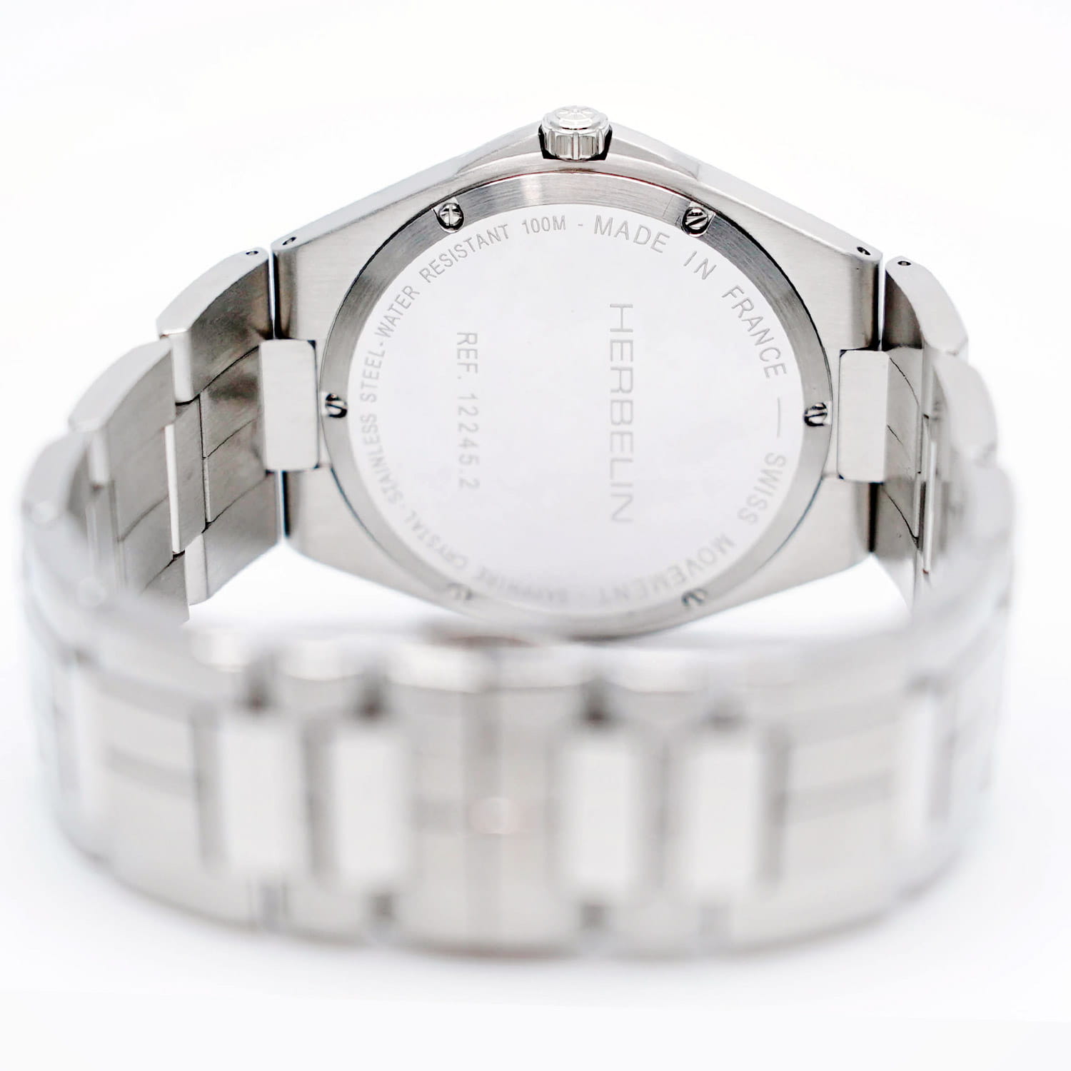 Мужские кварцевые наручные часы Herbelin Cap Camarat 12245B16 – отражающий идеальное сочетание современного дизайна, надёжности и функциональности. Элегантный облик станет превосходным завершением образа, наделив его индивидуальным характером. Корпус из нержавеющей стали серебристого цвета, диаметром 40.5 мм, идеально сбалансирован и элегантен. Сапфировое стеклоСапфировое стеклоПрочный и надёжный материал из кристалла сапфира синтетического происхождения, характеризующийся особой твёрдостью и устойчивостью к царапинам и повреждениям. защищает циферблат от царапин и устойчивое к механическим повреждениям. БезельБезельВнешний ободок, закрепляющий стекло. В спортивных часах так называется поворотное кольцо с делениями на циферблате, выполняет роль таймера – замеряет отрезки времени на шкале. Неподвижный безель – элемент декора. Однонаправленно вращающийся безель на дайверских часах позволяет фиксировать моменты погружения и выныривания на поверхность. украшен винтами, заводная головка с защитой. Окошко даты находится в положении 6 часов. Стрелки и метки с люминесцентным покрытиемЛюминесцентное покрытиеПозволяет считывать показания времени в темноте. Производители наносят на стрелки, часовые индексы, безель или поверхность циферблата светонакопительный состав, дающий холодное свечение.. Стальной браслет на застёжке-бабочке с кнопкамиЗастёжка "бабочка"Такой вид застёжки дополняется предохранителями, помогающими избежать случайного раскрытия браслета. Обладают изящным исполнением. обеспечивает комфортное ношение. Водозащита 100 метров позволит плавать, нырять и заниматься другими водными видами спорта. Эта модель – отличный выбор для тех, кто ищет сочетание стиля, качества и функциональности. Часы станут не только полезным аксессуаром, но и выразительным элементом вашего имиджа.