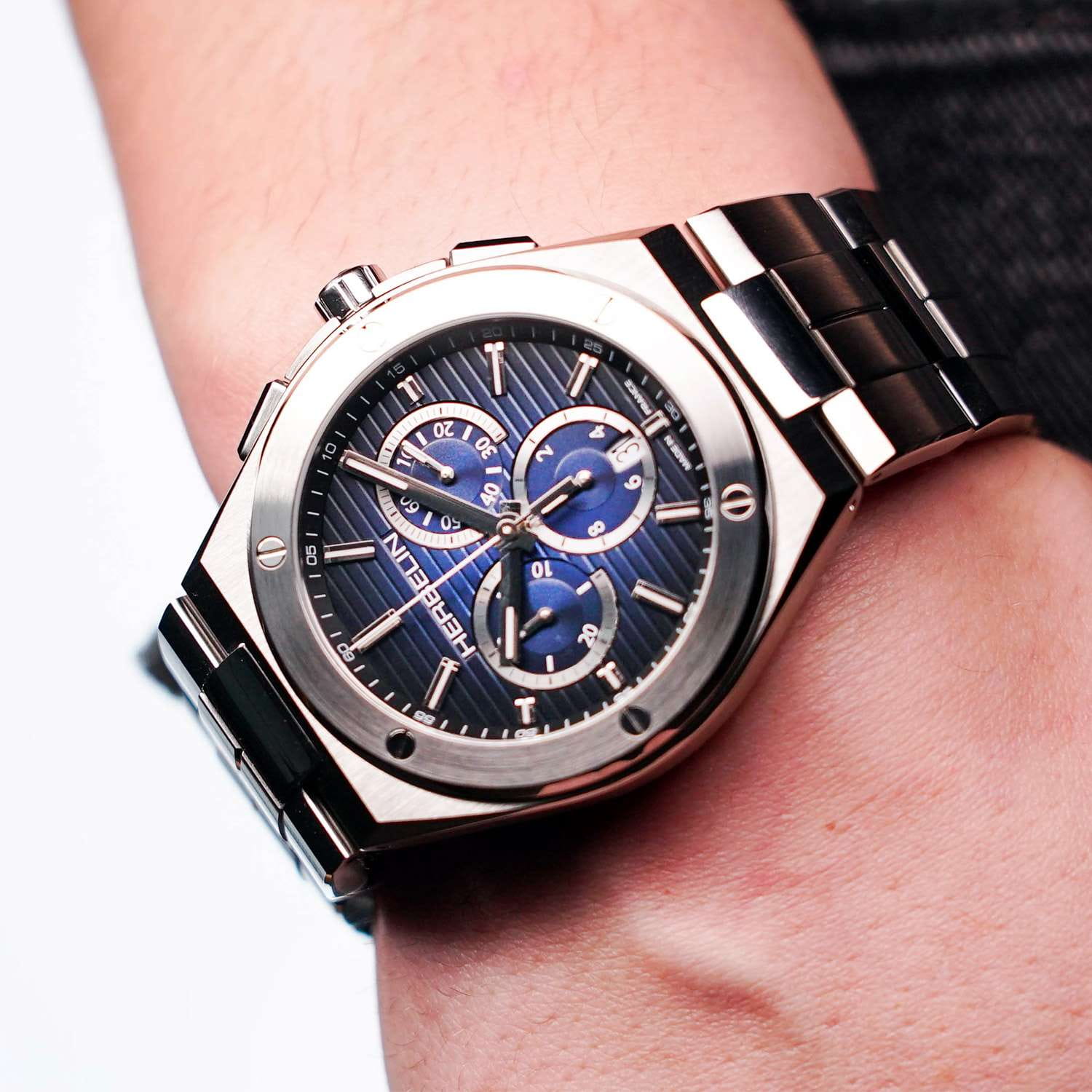 Мужские кварцевые наручные часы-хронографХронографФункция позволяет измерять отрезки времени с особой точностью: часы, минуты, секунды. Верным признаком хронографа является наличие на циферблате 3 дополнительных окошек-счётчиков. Herbelin Cap Camarat 37645B15 – отражающий идеальное сочетание современного дизайна, надёжности и функциональности. Элегантный облик станет превосходным завершением образа, наделив его индивидуальным характером. Корпус из нержавеющей стали серебристого цвета, диаметром 42 мм, идеально сбалансирован и элегантен. Сапфировое стеклоСапфировое стеклоПрочный и надёжный материал из кристалла сапфира синтетического происхождения, характеризующийся особой твёрдостью и устойчивостью к царапинам и повреждениям. защищает циферблат от царапин и устойчивое к механическим повреждениям. БезельБезельВнешний ободок, закрепляющий стекло. В спортивных часах так называется поворотное кольцо с делениями на циферблате, выполняет роль таймера – замеряет отрезки времени на шкале. Неподвижный безель – элемент декора. Однонаправленно вращающийся безель на дайверских часах позволяет фиксировать моменты погружения и выныривания на поверхность. украшен винтами, заводная головка с защитой. Окошко даты находится в положении 6 часов. Стрелки и метки с люминесцентным покрытиемЛюминесцентное покрытиеПозволяет считывать показания времени в темноте. Производители наносят на стрелки, часовые индексы, безель или поверхность циферблата светонакопительный состав, дающий холодное свечение.. Стальной браслет на застёжке-бабочке с кнопкамиЗастёжка "бабочка"Такой вид застёжки дополняется предохранителями, помогающими избежать случайного раскрытия браслета. Обладают изящным исполнением. обеспечивает комфортное ношение. Водозащита 100 метров позволит плавать, нырять и заниматься другими водными видами спорта. Эта модель – отличный выбор для тех, кто ищет сочетание стиля, качества и функциональности. Часы станут не только полезным аксессуаром, но и выразительным элементом вашего имиджа.