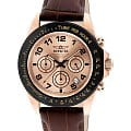 Часы оснащены функцией хронографаХронографФункция позволяет измерять отрезки времени с особой точностью: часы, минуты, секунды. Верным признаком хронографа является наличие на циферблате 3 дополнительных окошек-счётчиков. и тахиметромТахиметрРазмеченная шкала, располагается на ободке или безеле часов. Тахиметр позволяет рассчитать скорость на определённом участке пути, расстояние измеряется в километрах или милях., что делает их идеальными для точного измерения времени и скорости различных событий. Циферблат защищен прочным минеральным стекломМинеральное стеклоМинеральное стекло представляет собой искусственно выращенный минерал кварца. Такое стекло отличается особой устойчивостью к повреждениям и царапинам. Уступает по некоторым качествам сапфировому стеклу., обладающим высокой устойчивостью к царапинам. Завинчивающаяся рифленая заводная головка с защитой гарантирует надежную герметизацию механизма, а завинчивающаяся задняя крышка добавляет дополнительную защиту от внешних воздействий. Кожаный ремешок на стандартной застёжке. Часы обладают водозащитой до 200 метров, что позволяет плавать, нырять и заниматься другими водными видами спорта без опасений за сохранность механизма.