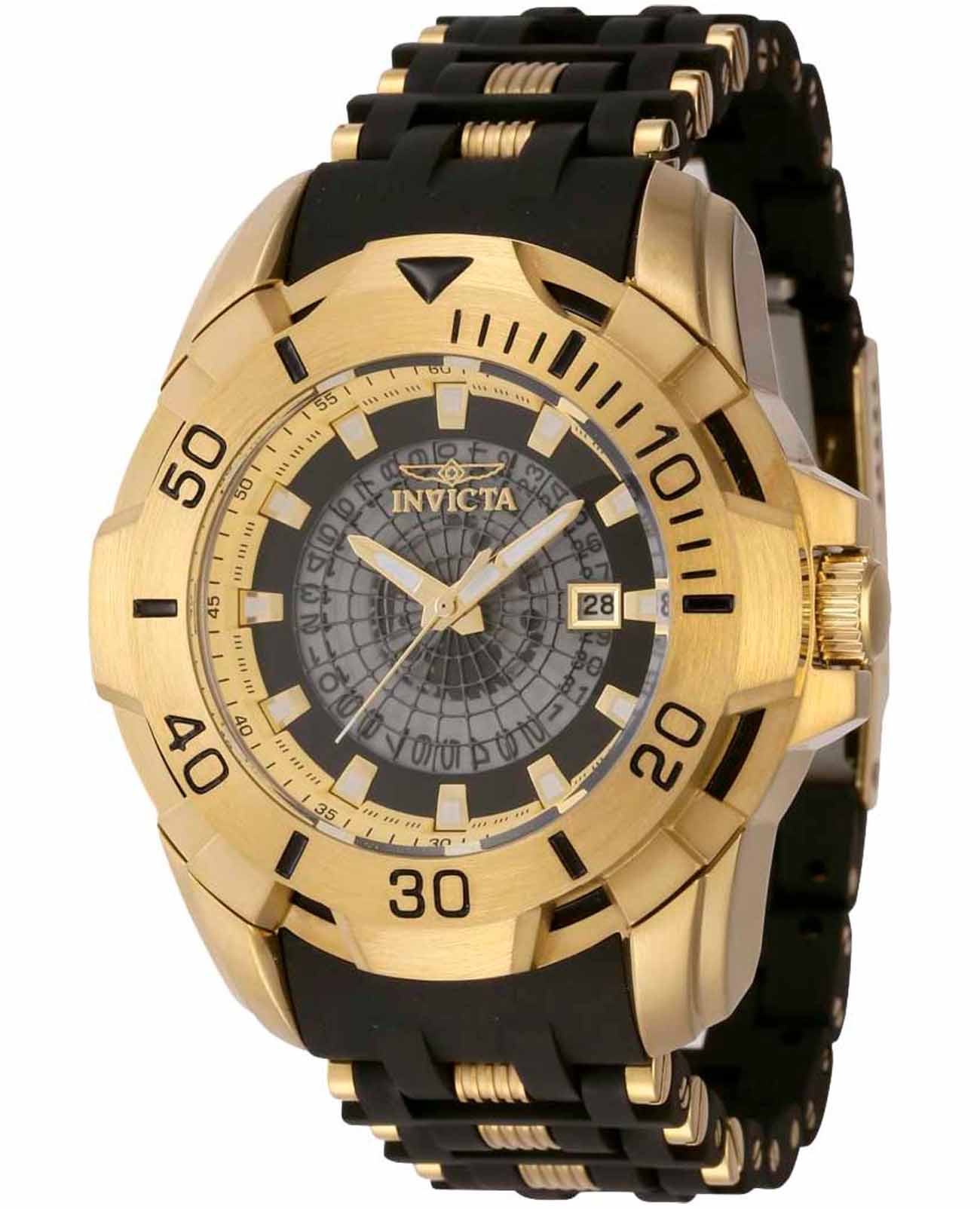 Мужские наручные часы Invicta Specialty IN44129 из коллекции Sea Spider сочетают в себе спортивный дизайн и надежность современных технологий. Модель обладает круглым корпусом диаметром 45.9 мм, выполненным из нержавеющей стали с IP-покрытиемIP-покрытиеМетод ионного напыления. Демонстрирует повышенную устойчивость к истиранию, окислению и химическим веществам. Под воздействием высокого давления и температуры около 1500°C молекулы металла надёжно соединяются с частицами корпуса часов., что обеспечивает высокую устойчивость к внешним воздействиям . Ремешок часов изготовлен из полиуретана и нержавеющей стали с IP-покрытиемIP-покрытиеМетод ионного напыления. Демонстрирует повышенную устойчивость к истиранию, окислению и химическим веществам. Под воздействием высокого давления и температуры около 1500°C молекулы металла надёжно соединяются с частицами корпуса часов., гарантируя комфортное ношение и безопасность.  Циферблат дополнен индексными метками и светящимися стрелками с люминесцентным покрытиемЛюминесцентное покрытиеПозволяет считывать показания времени в темноте. Производители наносят на стрелки, часовые индексы, безель или поверхность циферблата светонакопительный состав, дающий холодное свечение., которые обеспечивают отличную видимость даже в темноте. На циферблате также присутствуют минутные деления по внешнему ободку, а также один малый циферблат для дополнительных функций. Для защиты используется минеральное стеклоМинеральное стеклоМинеральное стекло представляет собой искусственно выращенный минерал кварца. Такое стекло отличается особой устойчивостью к повреждениям и царапинам. Уступает по некоторым качествам сапфировому стеклу. Flame Fusion, которое обеспечивает прочность и устойчивость к царапинам. Водонепроницаемость модели достигает 100 метров (10 атмосфер), что позволяет использовать их во время плавания и других водных видов спорта, однако не рекомендуется для глубоководного дайвинга . Сочетание практичности, надежности и стильного дизайна делает эту модель универсальным аксессуаром как для повседневной носки, так и для занятий спортом.