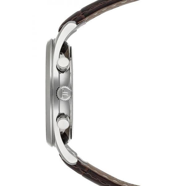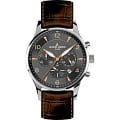 Мужские наручные часы с хронографом; Корпус - Нержавеющая сталь, Стекло - Минеральное, Водозащита -100 м. (WR 100), Материал ремешка - Кожаный