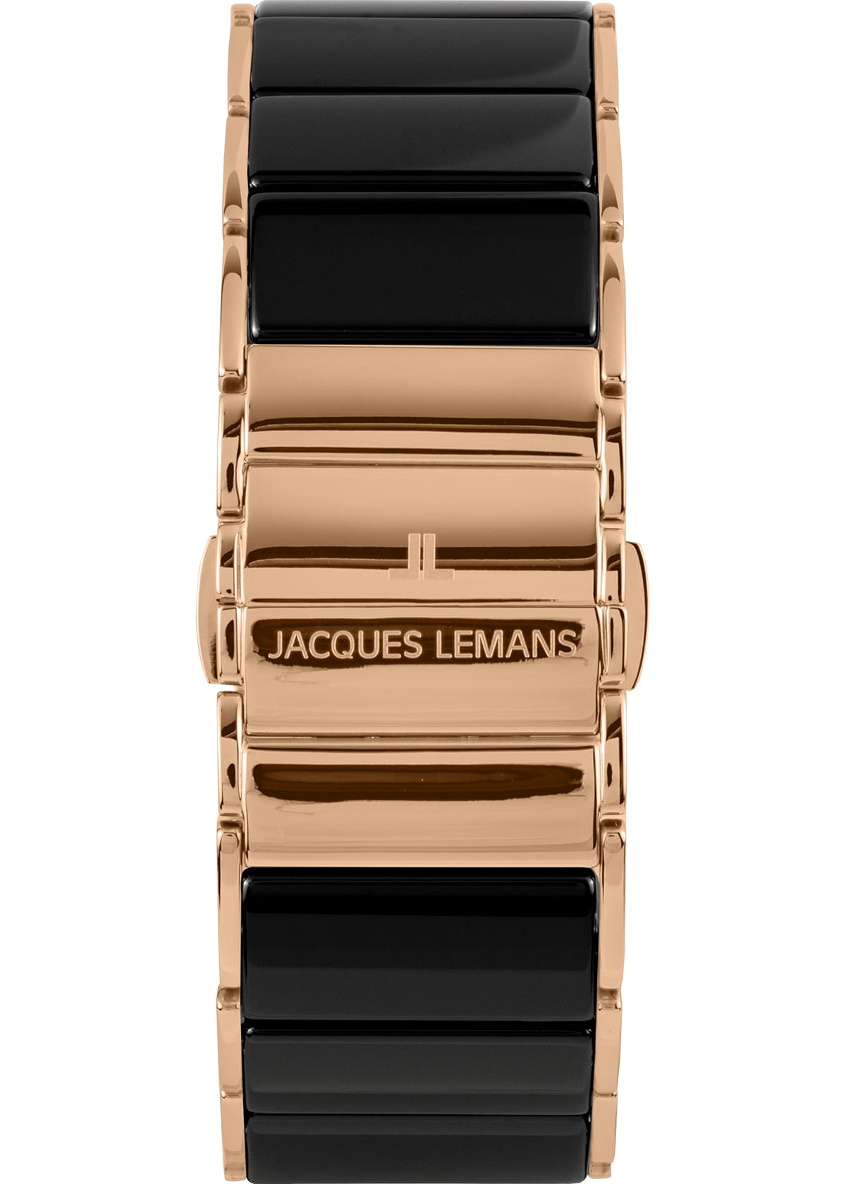 Мужские австрийские часы с хронографХронографФункция позволяет измерять отрезки времени с особой точностью: часы, минуты, секунды. Верным признаком хронографа является наличие на циферблате 3 дополнительных окошек-счётчиков. Jacques Lemans Dublin 1-1941B, кварцевый механизм с высокой точностью. Класс водозащиты: 50 метров, позволит защитить корпус от случайных брызг или капель дождя. Корпус часов изготовлен из стали с PVDPVDУльтратонкое покрытие наносится в технике вакуумного напыления, сочетает в себе нитрид титана особой прочности со слоем золота или оксида хрома. Несёт в себе декоративную или защитную функцию. покрытием цвета розовое золото. Браслет модели из высокотехнологичной керамикиВысокотехнологичная керамикаИнновационный запатентованный Rado материал с гладкой или матовой поверхностью. Керамика за счёт кристаллической структуры обладает повышенной устойчивостью от возникновения царапин. Материал способен принимать температуру тела человека, обеспечивая невероятный комфорт при ношении. черного цвета дополнен надежной .