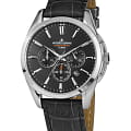 Мужские наручные часы-хронографХронографФункция позволяет измерять отрезки времени с особой точностью: часы, минуты, секунды. Верным признаком хронографа является наличие на циферблате 3 дополнительных окошек-счётчиков. Jacques Lemans Classic 1-1945A, кварцевый механизм с высокой точностью. Класс водозащиты: 100 метров, позволит плавать, нырять и заниматься другими водными видами спорта. Корпус часов изготовлен из стали. Черный циферблат с полировкой в виде солнечных лучей вмещает три дополнительных индикатора (24-х часов, минутный и секундный накопитель) и окошко даты. В часах установлено ударопрочное минеральное стеклоМинеральное стеклоМинеральное стекло представляет собой искусственно выращенный минерал кварца. Такое стекло отличается особой устойчивостью к повреждениям и царапинам. Уступает по некоторым качествам сапфировому стеклу. Crystex. Завинчивающаяся задняя крышка из стали поддерживает повышенную водостойкость 10 атмосфер. Ремешок сделан из натуральной кожи черного цвета.