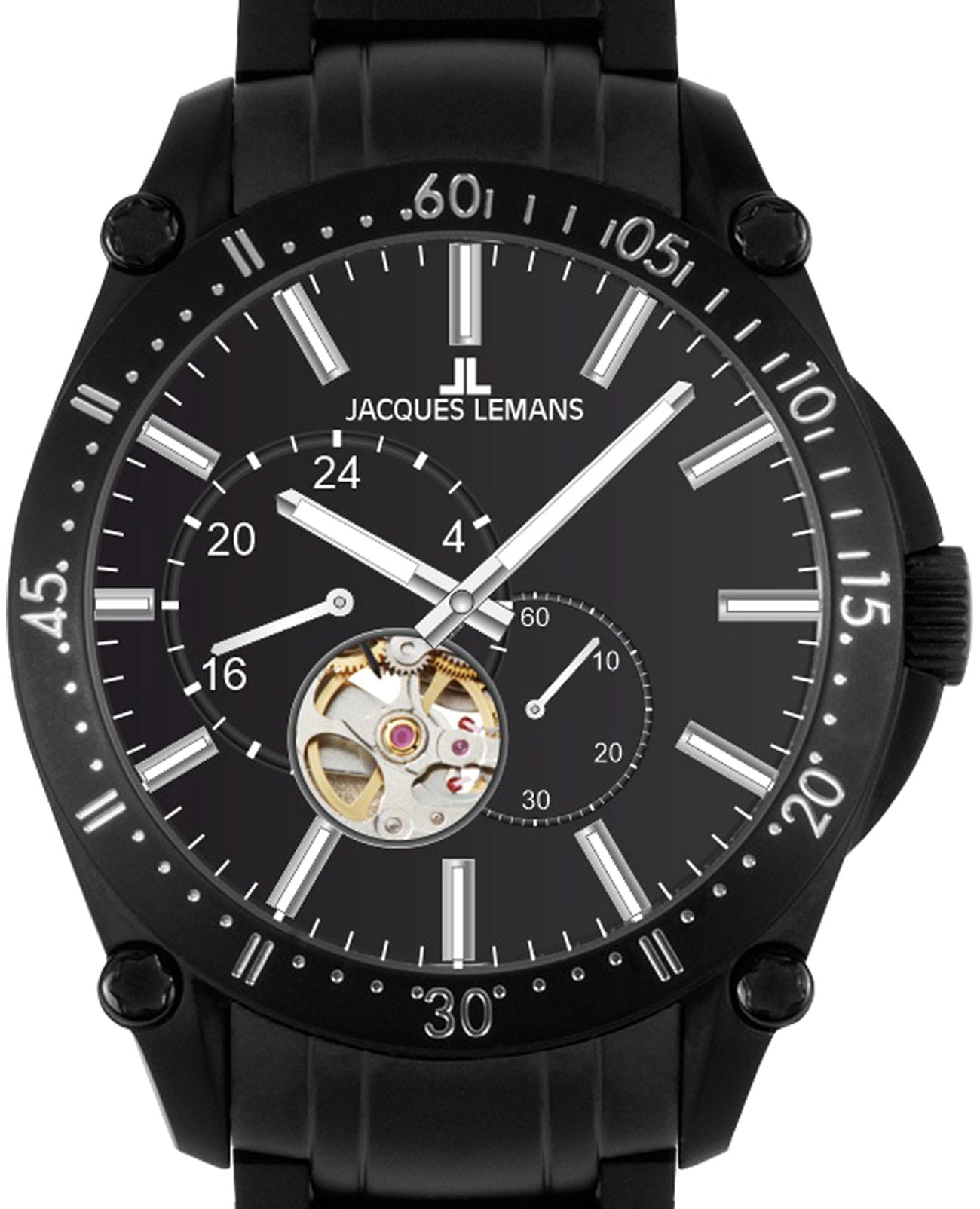 Мужские механические часы-скелетоны Jacques Lemans 1-2201F – лаконичная красота и изысканная элегантность. Оригинальная модель с классическим оформлением станет превосходным завершением образа, наделив его индивидуальным характером. Корпус выполнен из нержавеющей стали с PVD-покрытиемPVDУльтратонкое покрытие наносится в технике вакуумного напыления, сочетает в себе нитрид титана особой прочности со слоем золота или оксида хрома. Несёт в себе декоративную или защитную функцию. черного цвета, диаметром 44 мм, что обеспечивает долговечность и утончённый внешний вид. Минеральное стеклоМинеральное стеклоМинеральное стекло представляет собой искусственно выращенный минерал кварца. Такое стекло отличается особой устойчивостью к повреждениям и царапинам. Уступает по некоторым качествам сапфировому стеклу. с сапфировым напылением защищает циферблат от царапин. Стальной браслет с PVD-покрытиемPVDУльтратонкое покрытие наносится в технике вакуумного напыления, сочетает в себе нитрид титана особой прочности со слоем золота или оксида хрома. Несёт в себе декоративную или защитную функцию. на раскладной застёжкеРаскладная застёжкаТакой тип застёжки используется только на браслетах из металла. Она никогда не раскрывается полностью, происходит разделение на 2 и более частей. Раскладывающая застёжка снизит вероятность потери часов к минимуму. обеспечивает комфортное ношение. Водозащита 100 метров позволит плавать, нырять и заниматься другими водными видами спорта. Стрелки и метки с люминесцентным покрытиемЛюминесцентное покрытиеПозволяет считывать показания времени в темноте. Производители наносят на стрелки, часовые индексы, безель или поверхность циферблата светонакопительный состав, дающий холодное свечение. позволяющие легко определять время даже в темноте. БезельБезельВнешний ободок, закрепляющий стекло. В спортивных часах так называется поворотное кольцо с делениями на циферблате, выполняет роль таймера – замеряет отрезки времени на шкале. Неподвижный безель – элемент декора. Однонаправленно вращающийся безель на дайверских часах позволяет фиксировать моменты погружения и выныривания на поверхность. дополнен минутной шкалой. Запас хода 42 ч. На отдельные циферблаты вынесены индикатор 24-х часов и малая секундная стрелка. Сквозь прозрачное окошко можно наблюдать за работой механизма часов. Рифленая заводная головка с защитой. Это аксессуар для мужчины, который ценит классический стиль и функциональность.