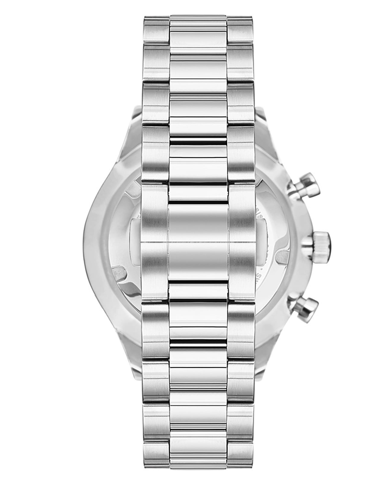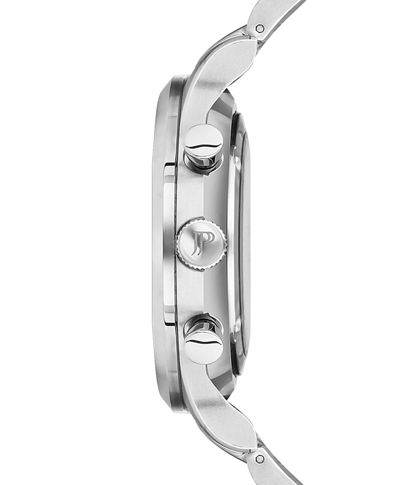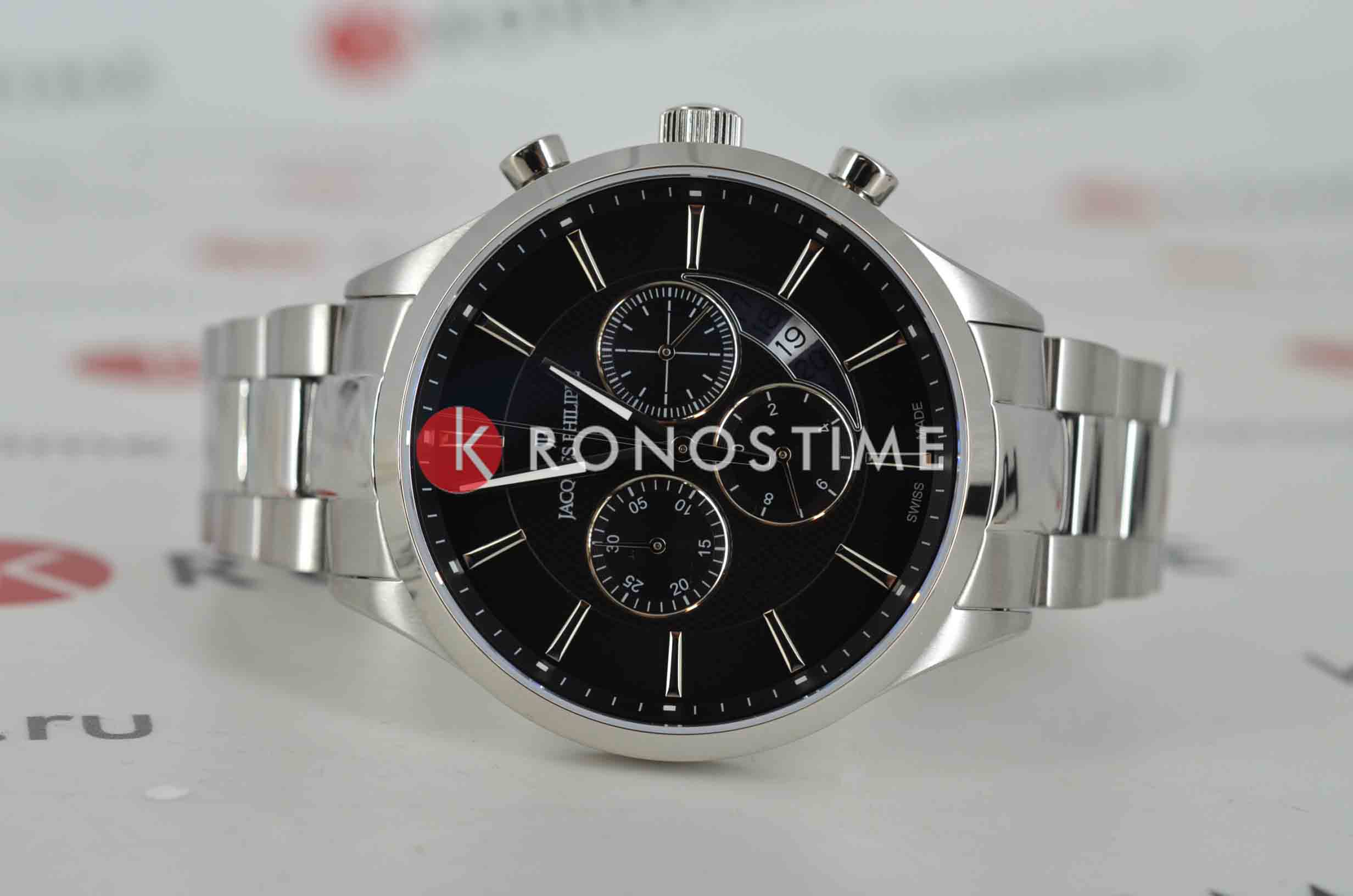 Швейцарские мужские часы-хронографХронографФункция позволяет измерять отрезки времени с особой точностью: часы, минуты, секунды. Верным признаком хронографа является наличие на циферблате 3 дополнительных окошек-счётчиков. Jacques Philippe Gallant JPQGC031316, кварцевый механизм с высокой точностью. Сапфировое стеклоСапфировое стеклоПрочный и надёжный материал из кристалла сапфира синтетического происхождения, характеризующийся особой твёрдостью и устойчивостью к царапинам и повреждениям. устойчивое к появлению царапин, обладающее высокой прозрачностью. Корпус часов изготовлен из нержавеющей стали. На циферблате три дополнительных индикатора. Стрелки с люминесцентным покрытиемЛюминесцентное покрытиеПозволяет считывать показания времени в темноте. Производители наносят на стрелки, часовые индексы, безель или поверхность циферблата светонакопительный состав, дающий холодное свечение.. Окошко даты находится между 4 и 5 часами. Класс водозащиты: 50 метров, позволит защитить корпус от случайных брызг или капель дождя. Стальной браслет на застёжке «бабочка» с кнопкамиЗастёжка "бабочка"Такой вид застёжки дополняется предохранителями, помогающими избежать случайного раскрытия браслета. Обладают изящным исполнением. .