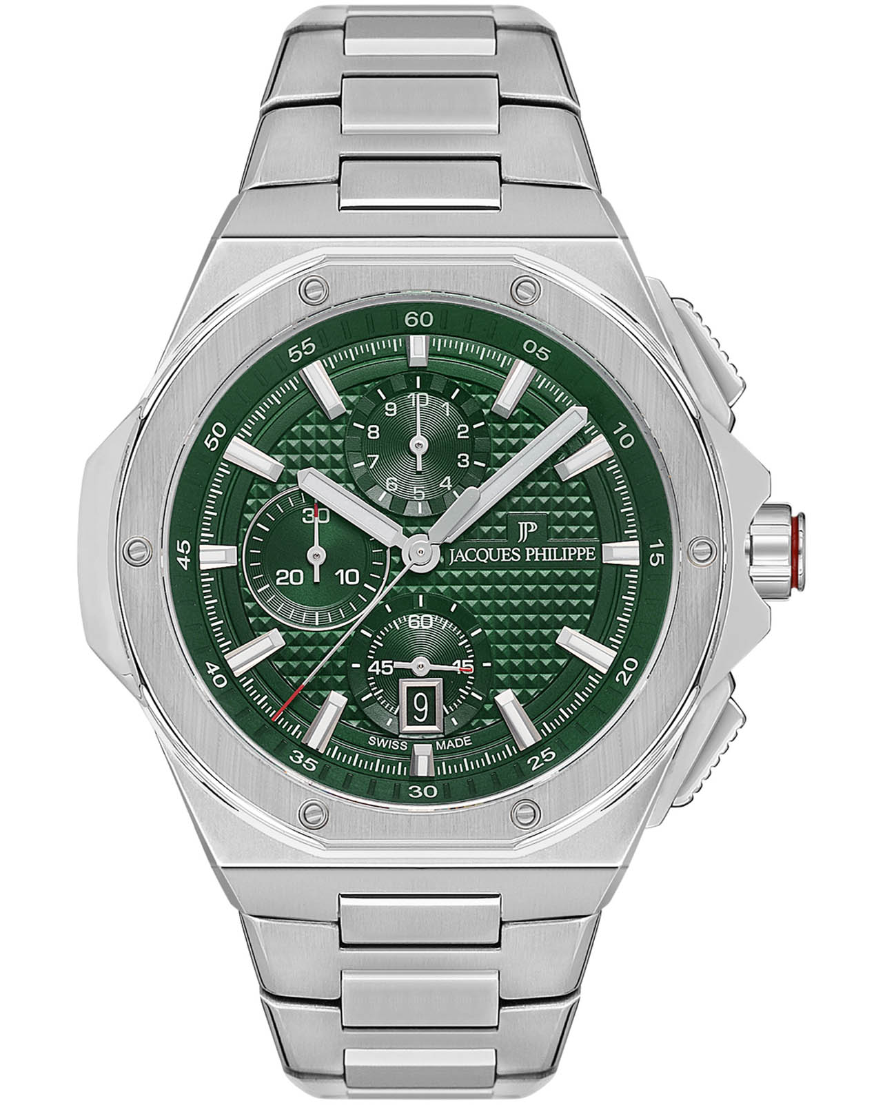 Часы Jacques Philippe JPQGC4813X6 из коллекции Esquire — элегантные мужские часы, сочетающие в себе швейцарское качество и современный дизайн. Корпус диаметром 44 мм выполнен из нержавеющей стали, а зелёный циферблат защищён сапфировым стекломСапфировое стеклоПрочный и надёжный материал из кристалла сапфира синтетического происхождения, характеризующийся особой твёрдостью и устойчивостью к царапинам и повреждениям..