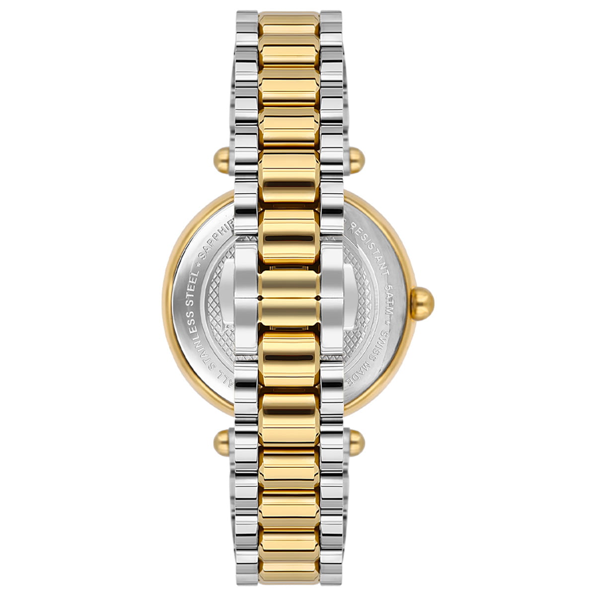 Швейцарские женские часы Jacques Philippe Mistress JPQLS0823X8, кварцевый механизм с высокой точностью. Сапфировое стеклоСапфировое стеклоПрочный и надёжный материал из кристалла сапфира синтетического происхождения, характеризующийся особой твёрдостью и устойчивостью к царапинам и повреждениям. устойчивое к появлению царапин, обладающее высокой прозрачностью. Корпус часов изготовлен из нержавеющей стали с IP-покрытиемIP-покрытиеМетод ионного напыления. Демонстрирует повышенную устойчивость к истиранию, окислению и химическим веществам. Под воздействием высокого давления и температуры около 1500°C молекулы металла надёжно соединяются с частицами корпуса часов.. Класс водозащиты: 50 метров, позволит защитить корпус от случайных брызг или капель дождя. Стальной браслет на застёжке-бабочке с кнопкамиЗастёжка "бабочка"Такой вид застёжки дополняется предохранителями, помогающими избежать случайного раскрытия браслета. Обладают изящным исполнением. . Циферблат и безельБезельВнешний ободок, закрепляющий стекло. В спортивных часах так называется поворотное кольцо с делениями на циферблате, выполняет роль таймера – замеряет отрезки времени на шкале. Неподвижный безель – элемент декора. Однонаправленно вращающийся безель на дайверских часах позволяет фиксировать моменты погружения и выныривания на поверхность. инкрустированы кристаллами. Окошко даты находится в положении 6 часов.