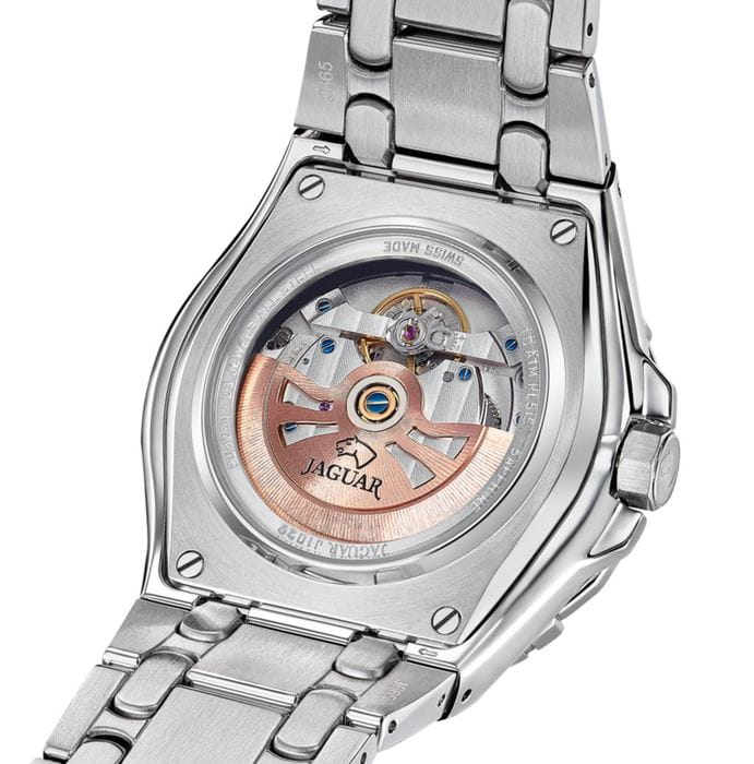 Мужские швейцарские часы Jaguar Diplomatic J1029/4 представляют собой воплощение высокого часового искусства. Они оснащены механическим механизмом с автоподзаводом, что обеспечивает точность и надёжность работы. Часы защищены сапфировым стекломСапфировое стеклоПрочный и надёжный материал из кристалла сапфира синтетического происхождения, характеризующийся особой твёрдостью и устойчивостью к царапинам и повреждениям., устойчивым к мелким механическим повреждениям, что гарантирует сохранность механизма. Корпус часов выполнен из нержавеющей стали, придающий ему прочность и долговечность. Стрелки и метки часов покрыты люминесцентным составомЛюминесцентное покрытиеПозволяет считывать показания времени в темноте. Производители наносят на стрелки, часовые индексы, безель или поверхность циферблата светонакопительный состав, дающий холодное свечение., обеспечивающий их хорошую видимость в условиях недостаточной освещённости. Окошко даты расположено в положении 6 часов. Класс водозащиты часов составляет 100 метров, что позволяет плавать, нырять и заниматься другими водными видами спорта. Изысканный стальной браслет на раскладной застёжкеРаскладная застёжкаТакой тип застёжки используется только на браслетах из металла. Она никогда не раскрывается полностью, происходит разделение на 2 и более частей. Раскладывающая застёжка снизит вероятность потери часов к минимуму., что обеспечивает удобство и комфорт при ношении. Стильный  циферблат и изысканные детали делают эти часы незаменимым аксессуаром для любого случая, от официальных мероприятий до повседневного использования.