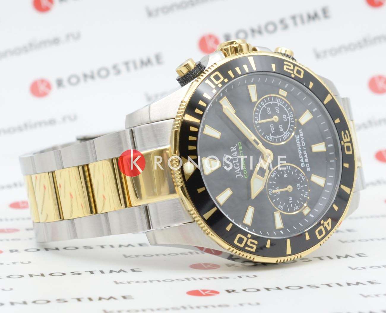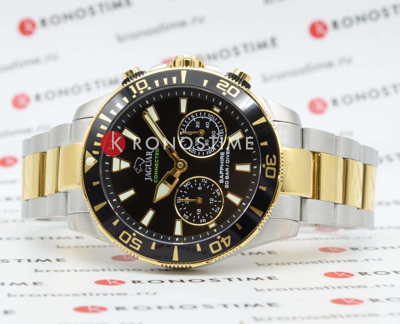 Мужские швейцарские часы Jaguar Connected J889/2. Сапфировое стеклоСапфировое стеклоПрочный и надёжный материал из кристалла сапфира синтетического происхождения, характеризующийся особой твёрдостью и устойчивостью к царапинам и повреждениям. устойчивое к мелким механическим повреждениям. Корпус часов изготовлен из нержавеющей стали. Стрелки и метки с люминесцентным покрытиемЛюминесцентное покрытиеПозволяет считывать показания времени в темноте. Производители наносят на стрелки, часовые индексы, безель или поверхность циферблата светонакопительный состав, дающий холодное свечение.. Календарь находится в положении 8 часов. Класс водозащиты: 200 метров, позволит плавать, нырять и заниматься другими водными видами спорта. Стальной браслет с частичным  PVD-покрытиемPVDУльтратонкое покрытие наносится в технике вакуумного напыления, сочетает в себе нитрид титана особой прочности со слоем золота или оксида хрома. Несёт в себе декоративную или защитную функцию. на раскладной застёжкеРаскладная застёжкаТакой тип застёжки используется только на браслетах из металла. Она никогда не раскрывается полностью, происходит разделение на 2 и более частей. Раскладывающая застёжка снизит вероятность потери часов к минимуму.. БезельБезельВнешний ободок, закрепляющий стекло. В спортивных часах так называется поворотное кольцо с делениями на циферблате, выполняет роль таймера – замеряет отрезки времени на шкале. Неподвижный безель – элемент декора. Однонаправленно вращающийся безель на дайверских часах позволяет фиксировать моменты погружения и выныривания на поверхность. с PVD-покрытиемPVDУльтратонкое покрытие наносится в технике вакуумного напыления, сочетает в себе нитрид титана особой прочности со слоем золота или оксида хрома. Несёт в себе декоративную или защитную функцию.. За точный ход работы часов, из коллекции Connected, отвечает кварцевый гибридный механизм швейцарского производства со Смарт-Модулем. Данный тип механизма обеспечивает возможность подключить часы к телефону через Bluetooth и управлять большим рядом дополнительных функций на выбор с помошью приложения Jaguar. Дополнительные функции: отображение даты и дня недели, секундомер, таймер, GMT, шагомер, поиск телефона, включение/выключение звука телефона при входящих вызовах, переключение музыки, вибро-уведомления.