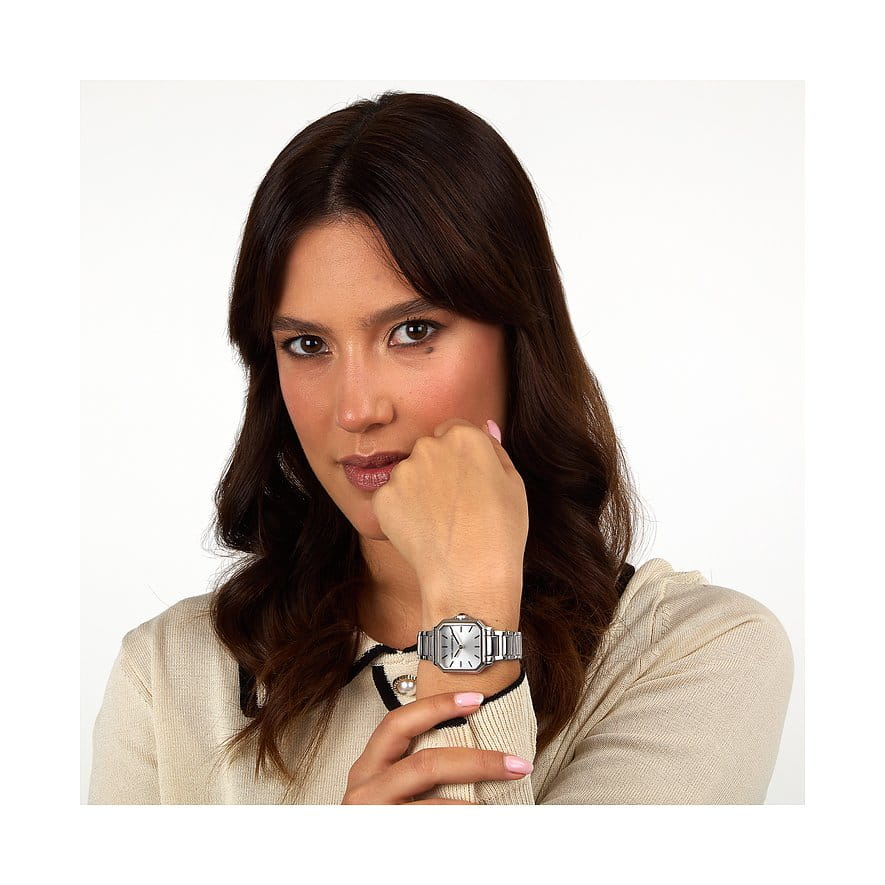 Женские элегантные часы Karl Lagerfeld Square Classics R0553102506, кварцевый механизм с высокой точностью. Минеральное стеклоМинеральное стеклоМинеральное стекло представляет собой искусственно выращенный минерал кварца. Такое стекло отличается особой устойчивостью к повреждениям и царапинам. Уступает по некоторым качествам сапфировому стеклу. устойчивое к появлению царапин, обладающее высокой прозрачностью. Изысканный корпус изготовлен из нержавеющей стали. Лаконичные центральные часовая, минутная стрелки. Водонепроницаемость 3 АТМ позволяет использовать часы в повседневных условиях — при мытье рук или под лёгким дождём. Браслет выполнен из стали и оснащён раскладной застёжкойРаскладная застёжкаТакой тип застёжки используется только на браслетах из металла. Она никогда не раскрывается полностью, происходит разделение на 2 и более частей. Раскладывающая застёжка снизит вероятность потери часов к минимуму., обеспечивающей комфорт и уверенную фиксацию на запястье, а также добавляя завершающий штрих к этому стильному аксессуару. Циферблат подчёркивает изысканный характер часов, создавая универсальный образ, подходящий как для повседневных ситуаций, так и для особых случаев.