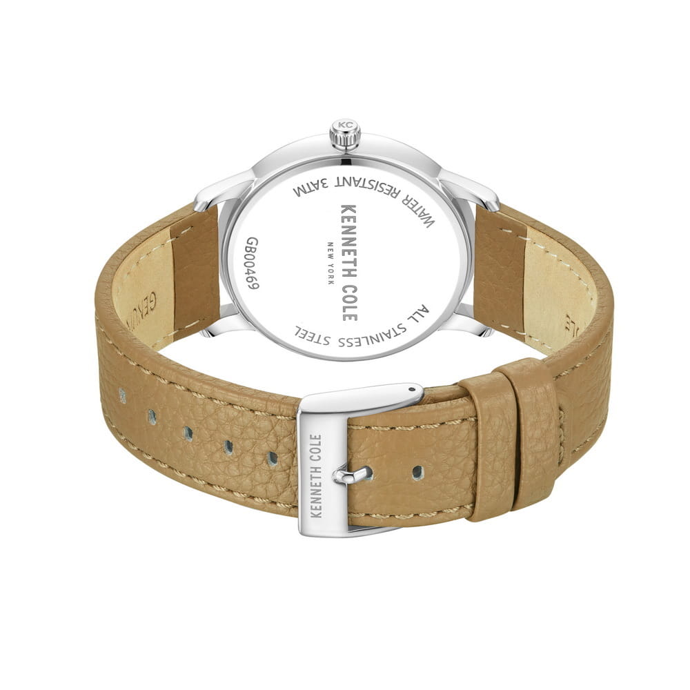Мужские кварцевые часы Kenneth Cole KCWGB0046901 — это стильный и лаконичный аксессуар, подчеркивающий деловой или повседневный образ. Корпус диаметром 42 мм выполнен из стали. Циферблат синего цвета оформлен метками в виде штрихов, а окошко даты расположено в положении 3 часов. Циферблат защищён минеральным стекломМинеральное стеклоМинеральное стекло представляет собой искусственно выращенный минерал кварца. Такое стекло отличается особой устойчивостью к повреждениям и царапинам. Уступает по некоторым качествам сапфировому стеклу.. Часы оснащены ремешком из натуральной кожи бежевого цвета с классической пряжкой. Водонепроницаемость 30 м позволяет использовать часы в повседневных условиях, защищая от случайных брызг и капель дождя. Сочетание классического дизайна и надёжного исполнения делает эти часы практичным выбором для любого времени года.
