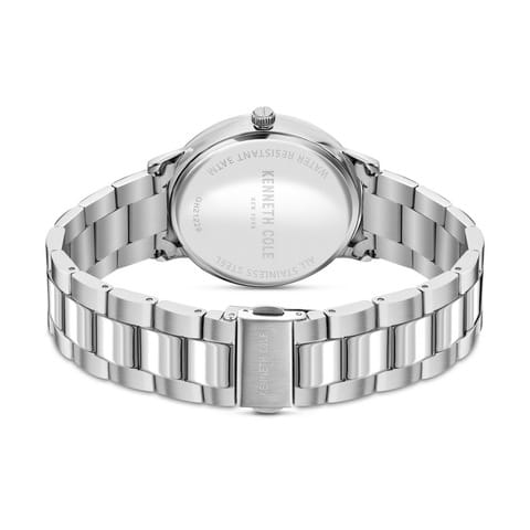 Мужские кварцевые часы с минеральным стеклом Kenneth Cole Slim KCWGH2122803, кварцевый механизм с высокой точностью. Класс водозащиты: 30 метров, позволит защитить корпус от случайных брызг или капель дождя. Корпус часов изготовлен из стали, серебристого цвета.