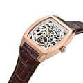 Kenneth Cole KCWGX0077402 — мужская автоматическая модель с выразительным современным стилем и скелетонизированным дизайном. Корпус выполнен из нержавеющей стали с PVD-покрытиемPVDУльтратонкое покрытие наносится в технике вакуумного напыления, сочетает в себе нитрид титана особой прочности со слоем золота или оксида хрома. Несёт в себе декоративную или защитную функцию. и подчёркивает архитектурный облик часов. Циферблат с открытым механизмом позволяет рассмотреть работу автоматического калибра, акцентируя внимание на его деталях. Метки и стрелки покрыты люминесцентным покрытиемЛюминесцентное покрытиеПозволяет считывать показания времени в темноте. Производители наносят на стрелки, часовые индексы, безель или поверхность циферблата светонакопительный состав, дающий холодное свечение., что обеспечивает читаемость в условиях слабого освещения. Защитную функцию выполняет минеральное стеклоМинеральное стеклоМинеральное стекло представляет собой искусственно выращенный минерал кварца. Такое стекло отличается особой устойчивостью к повреждениям и царапинам. Уступает по некоторым качествам сапфировому стеклу., устойчивое к повседневным повреждениям. Часы дополнены кожаным ремешком с классической застёжкой, создающим удобную посадку и комфорт в носке. Модель объединяет техническую эстетику скелетона и современный характер, подчёркивая индивидуальность владельца.