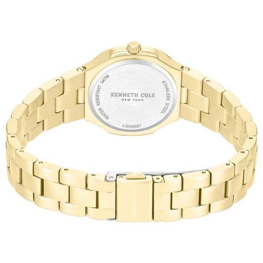 Женские кварцевые часы Kenneth Cole — это элегантный и выразительный аксессуар. Корпус диаметром 33 мм выполнен из нержавеющей стали 316L с IP-покрытиемIP-покрытиеМетод ионного напыления. Демонстрирует повышенную устойчивость к истиранию, окислению и химическим веществам. Под воздействием высокого давления и температуры около 1500°C молекулы металла надёжно соединяются с частицами корпуса часов.. Циферблат светло-перламутрового цвета оформлен индексами и украшен цирконами. Циферблат защищён минеральным стекломМинеральное стеклоМинеральное стекло представляет собой искусственно выращенный минерал кварца. Такое стекло отличается особой устойчивостью к повреждениям и царапинам. Уступает по некоторым качествам сапфировому стеклу.. Часы оснащены стальным браслетом с IP-покрытиемIP-покрытиеМетод ионного напыления. Демонстрирует повышенную устойчивость к истиранию, окислению и химическим веществам. Под воздействием высокого давления и температуры около 1500°C молекулы металла надёжно соединяются с частицами корпуса часов. на раскладной застёжкеРаскладная застёжкаТакой тип застёжки используется только на браслетах из металла. Она никогда не раскрывается полностью, происходит разделение на 2 и более частей. Раскладывающая застёжка снизит вероятность потери часов к минимуму.. Водонепроницаемость 30 м позволяет использовать часы в повседневных условиях. Идеальный выбор для тех, кто ценит стиль, блеск и американское качество.