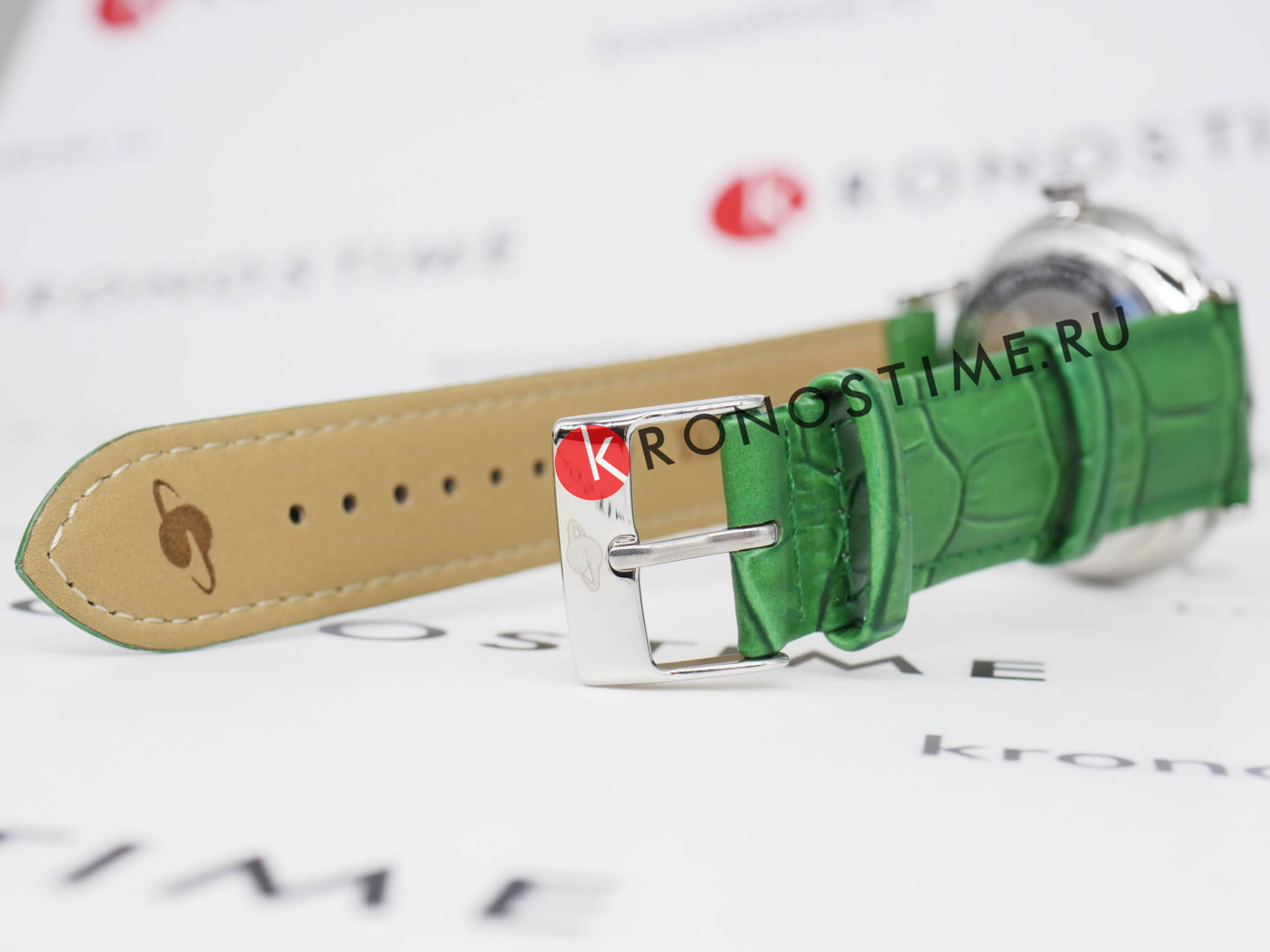 Мужские наручные часы Космос Орион K 011.17.38 — это сочетание традиций часового искусства 60-70-х годов и футуристического дизайна, вдохновленного космическими исследованиями. Они не только служат напоминанием о прошлом, но и побуждают задуматься о будущем, позволяя наслаждаться качеством и смыслом, вложенными в каждую деталь. Полированный корпус часов выполнен в виде силуэта летающей тарелки благодаря выпуклым формам стекла и нижней части корпуса. Стальные ушки, которые напоминают опоры летающей тарелки, завершает общий образ. На задней крышке часов выгравирован фантазийный сюжет – космическая станция будущего. Зеленый циферблат, выполненный в ретро-стиле, имеет выгнутые края, что требует использования сложной технологии производства. Такой дизайн был характерен для часов прошлых эпох. Секундная стрелка, имеющая изогнутую форму, идеально соответствует контуру циферблата. Выпуклый градиентный циферблат с шлифовкой, напоминающей солнечные лучи, украшен вручную изготовленными индексами, которые надежно крепятся на двух штифтах. Часовая и минутная стрелки, а также линия по краю циферблата, напоминающая ореол Земли, имеют люминесцентное покрытиеЛюминесцентное покрытиеПозволяет считывать показания времени в темноте. Производители наносят на стрелки, часовые индексы, безель или поверхность циферблата светонакопительный состав, дающий холодное свечение., которое светится в темноте, создавая впечатляющий визуальный эффект. В верхней части циферблата расположено окошко для отображения дня недели на английском языке, а индикаторы даты и дня недели дополнительно украшены фасочками, что придает им элегантный вид. Форма минерального стеклаМинеральное стеклоМинеральное стекло представляет собой искусственно выращенный минерал кварца. Такое стекло отличается особой устойчивостью к повреждениям и царапинам. Уступает по некоторым качествам сапфировому стеклу. также тщательно продумана, оно изогнуто как снаружи, так и изнутри. Это позволяет избежать искажений изображения на циферблате, в отличие от традиционного стекла с прямой внутренней частью, создающего эффект линзы. Ремешок из натуральной кожи зеленого цвета прекрасно дополняет часы. Также имеется возможность приобрести дополнительные ремни и браслеты миланского плетения, которые можно легко менять благодаря специальным крепежам. Заводная головка, застежка и ремешок украшены фирменным логотипом, подчеркивающим индивидуальность и стиль модели.