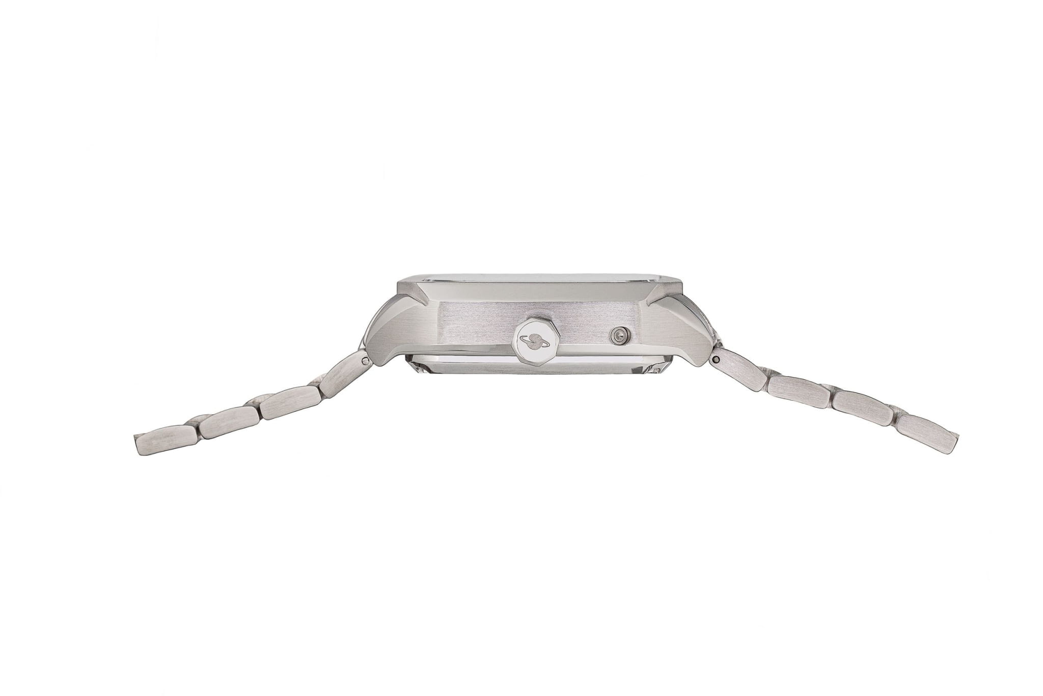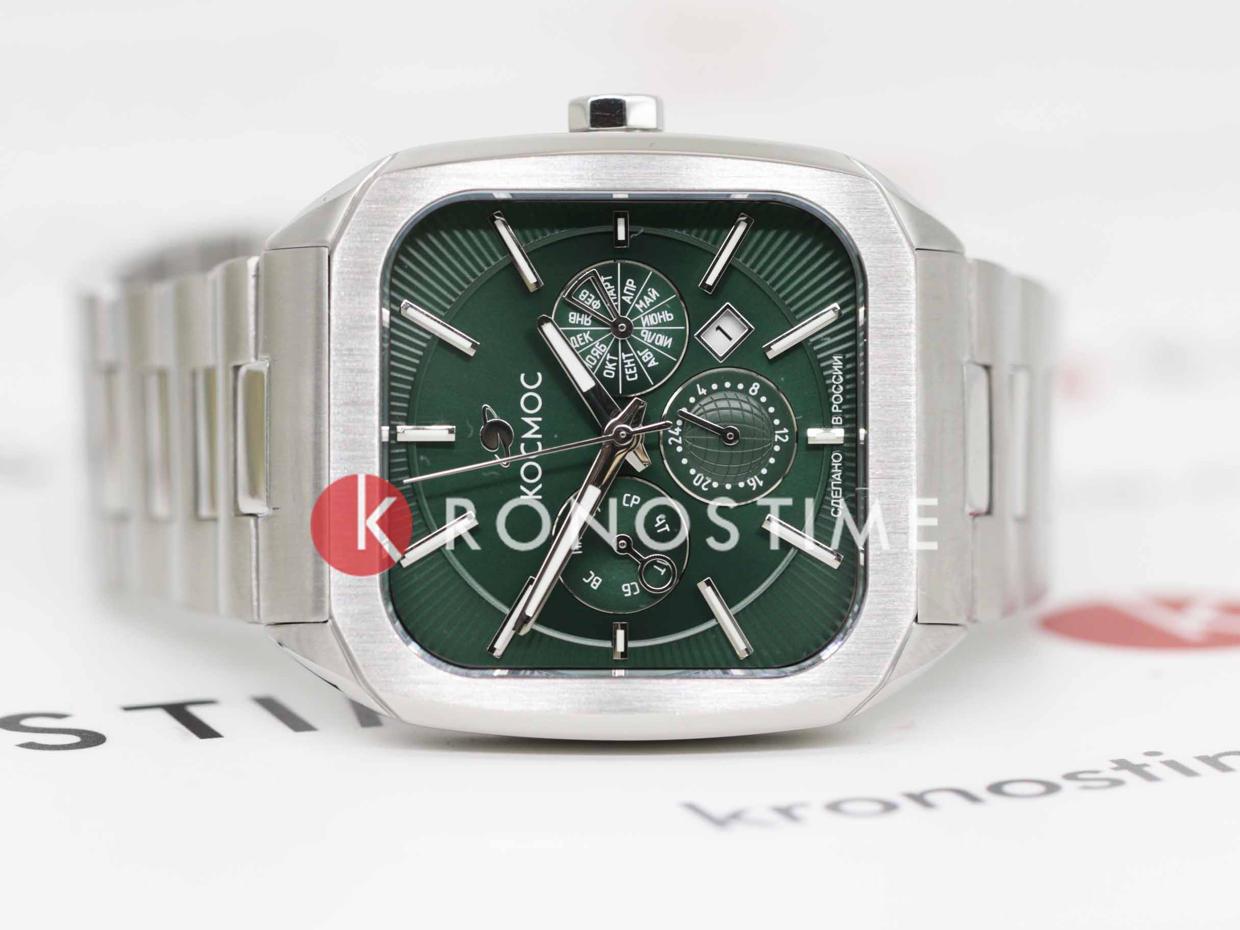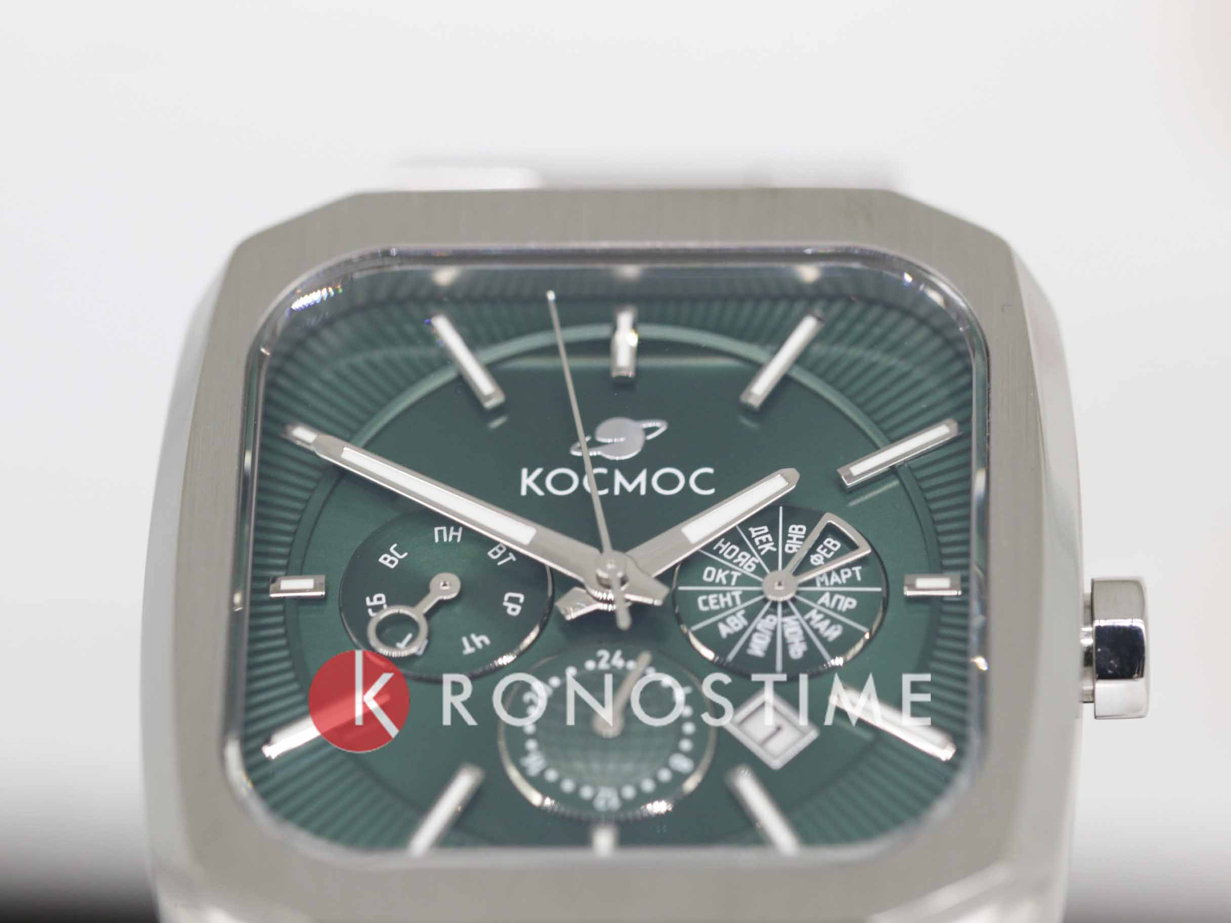 Мужские наручные часы Космос Марсоход II K 219.10.37 — это уникальная лимитированная серия, посвященная аппарату, способному передвигаться по поверхности Красной планеты. Марсоход ассоциируется с брутальностью, мастерством и технической сложностью. Наша страна дважды запускала подобные аппараты еще в 70-х годах прошлого века. Дизайн часов серии Марсоход вдохновлен лучшими работами советских мастеров, сочетая современные технологии часового искусства с обаянием стиля ретро. Корпус в форме квадрата с закругленными углами выполнен из нержавеющей стали украшенной зеркальной полировкой и сатинированием. Удобная заводная головка имеет форму гайки, что добавляет модели индустриальный шарм. Задняя крышка прозрачная, закрепленная на четырех винтах, и позволяет увидеть работу механизма TMI с подвижным ротором, на котором гравируется надпись «Сделано в России». Также здесь представлена гравировка с изображением космонавта, придающая часам особую значимость. Водостойкость достигает 10 атм (WR100), что позволяет использовать часы при плавании и других водных видах спорта. На задней крышке указан индивидуальный номер модели в формате от 01/50 до 50/50. Объемный циферблат состоит из двух уровней. В центре движутся три стрелки, часовая и минутная из которых имеют люминесцентное покрытиеЛюминесцентное покрытиеПозволяет считывать показания времени в темноте. Производители наносят на стрелки, часовые индексы, безель или поверхность циферблата светонакопительный состав, дающий холодное свечение., позволяющее определять время даже в темноте. Также, здесь расположили три дополнительных индикатора: день недели, месяц и время в формате 24-х часов. Для обозначения дня недели и месяца используется кириллица. Окошко даты между 4 и 5 часами выделено накладной рамкой. Циферблат защищен прочным сапфировым стеклом с антибликовым покрытиемСапфировое стеклоПрочный и надёжный материал из кристалла сапфира синтетического происхождения, характеризующийся особой твёрдостью и устойчивостью к царапинам и повреждениям., обеспечивающим отличную читаемость показаний в любых условиях. Второй уровень декорирован гильоше в виде солнечных лучей, на нем закреплены накладные индексы. Браслет изготовлен из литых стальных звеньев нержавеющей стали и оснащен удобной застёжкой «бабочка» с кнопкамиЗастёжка "бабочка"Такой вид застёжки дополняется предохранителями, помогающими избежать случайного раскрытия браслета. Обладают изящным исполнением. , которая сводит к минимуму вероятность потери. Заводная головка, застежка и браслет украшены фирменным логотипом бренда. Коллекция Марсоход — идеальный выбор для ценителей истории космических достижений и современных технологий.