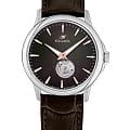 Мужские наручные часы Космос Телескоп K 304.12.34 —  это уникальная лимитированная серия под названием Телескоп, посвящена аппарату приоткрывающего взгляду бескрайние дали космического пространства. Апертура открытого баланса модели по форме напоминает круглую линзу телескопа. Сквозь это окошко, расположенное на черном циферблате, также можно увидеть много интересного: ту самую систему «баланс-спираль» автоматического механизма, которая отвечает за точность хода. Корпус часов выполнен из нержавеющей стали, классической круглой формы и достаточно тонкий для механических моделей. Это стало возможным благодаря использованию механизма Miyota, калибр 9029, с высотой всего 3.9 мм. Циферблат декорирован вертикальной текстурой в ретро-стиле, по которой движутся крупные часовая и минутная стрелки, имеющие люминесцентное покрытиеЛюминесцентное покрытиеПозволяет считывать показания времени в темноте. Производители наносят на стрелки, часовые индексы, безель или поверхность циферблата светонакопительный состав, дающий холодное свечение., позволяющее определять время даже в темноте. Циферблат защищен прочным сапфировым стеклом с антибликовым покрытиемСапфировое стеклоПрочный и надёжный материал из кристалла сапфира синтетического происхождения, характеризующийся особой твёрдостью и устойчивостью к царапинам и повреждениям., обеспечивающим отличную читаемость показаний в любых условиях. Прозрачная задняя крышка, закрепленная на четырех винтах, демонстрирует механизм и содержит выгравированный индивидуальный номер экземпляра  хх/50, отражающий лимитированный тираж всего в 50 штук. Ремешок часов сделан из натуральной кожи коричневого цвета и оснащен удобной застёжкой «бабочка» с кнопкамиЗастёжка "бабочка"Такой вид застёжки дополняется предохранителями, помогающими избежать случайного раскрытия браслета. Обладают изящным исполнением. , которая сводит к минимуму вероятность потери. Модель Телескоп сочетает классический дизайн и универсальность, прекрасно подходя как к деловому костюму, так и к более повседневным образам.
