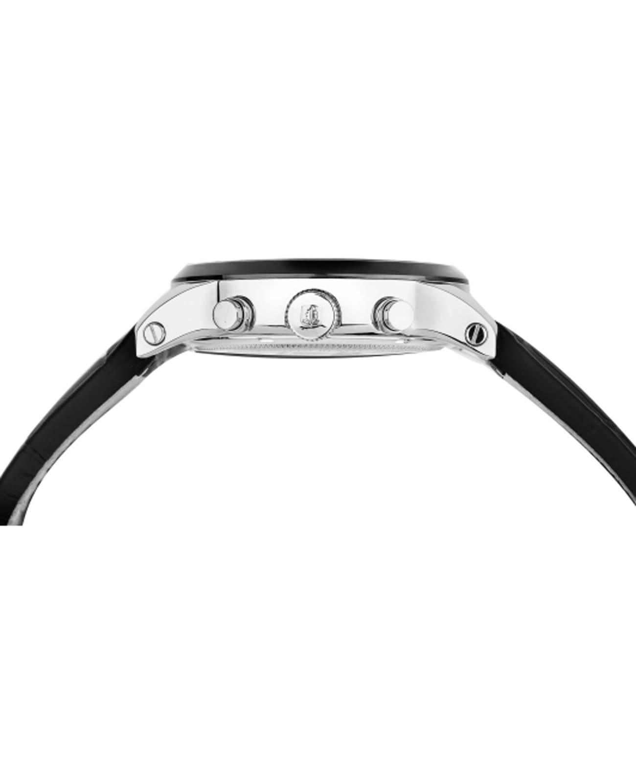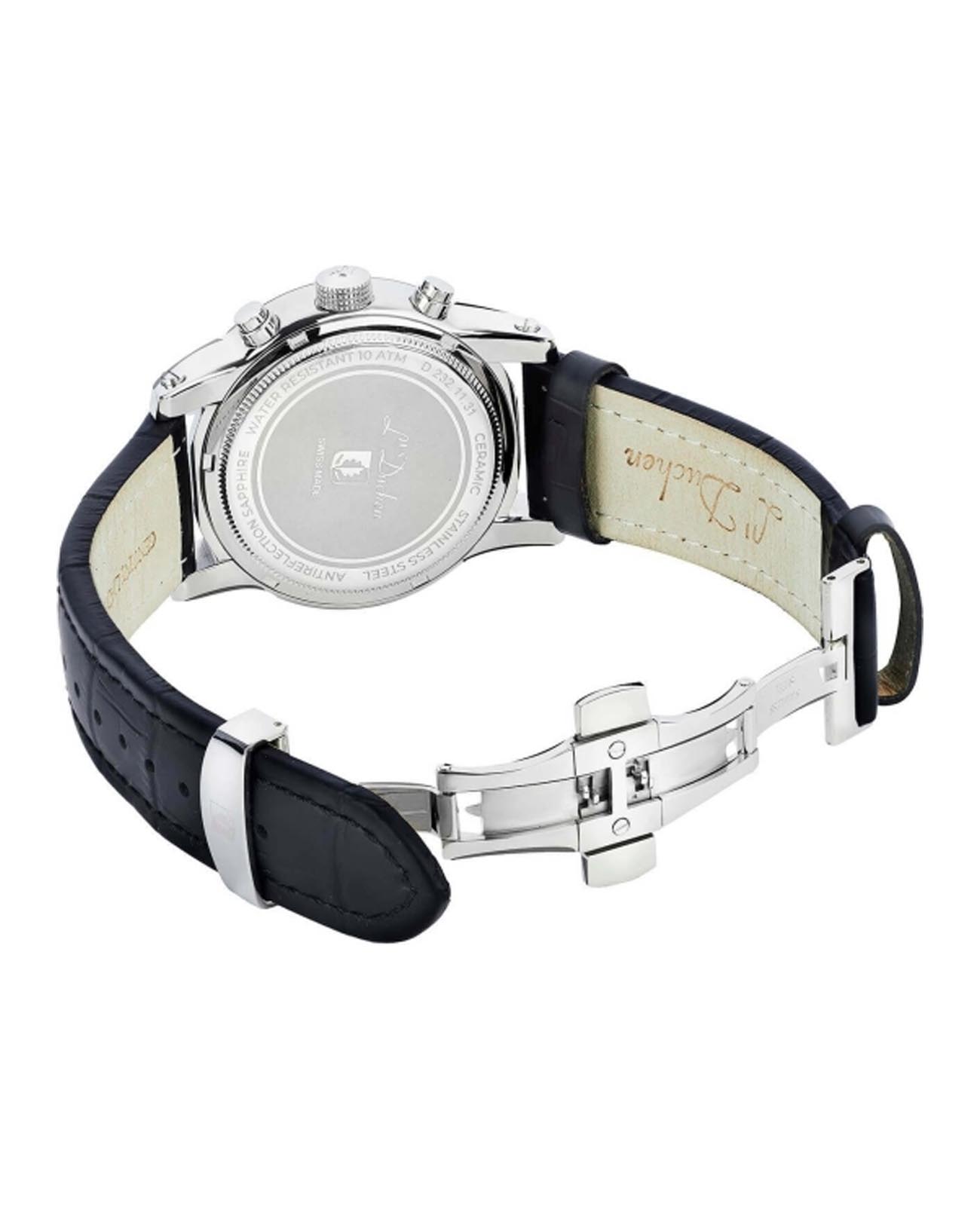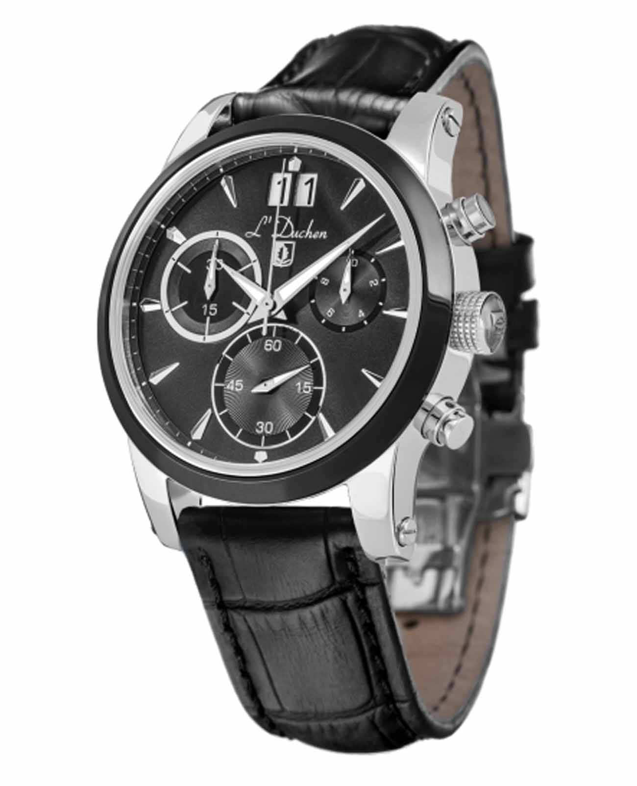 Мужские швейцарские часы-хронографХронографФункция позволяет измерять отрезки времени с особой точностью: часы, минуты, секунды. Верным признаком хронографа является наличие на циферблате 3 дополнительных окошек-счётчиков. L'Duchen Aerostat Chrono D 232.11.31 кварцевый механизм с высокой точностью. Сапфировое стеклоСапфировое стеклоПрочный и надёжный материал из кристалла сапфира синтетического происхождения, характеризующийся особой твёрдостью и устойчивостью к царапинам и повреждениям. устойчивое к появлению царапин, обладающее высокой прозрачностью. Корпус часов выполнен из нержавеющей стали. БезельБезельВнешний ободок, закрепляющий стекло. В спортивных часах так называется поворотное кольцо с делениями на циферблате, выполняет роль таймера – замеряет отрезки времени на шкале. Неподвижный безель – элемент декора. Однонаправленно вращающийся безель на дайверских часах позволяет фиксировать моменты погружения и выныривания на поверхность. из керамики. Стрелки с люминесцентным покрытиемЛюминесцентное покрытиеПозволяет считывать показания времени в темноте. Производители наносят на стрелки, часовые индексы, безель или поверхность циферблата светонакопительный состав, дающий холодное свечение.. Класс водозащиты: 100 метров, позволит плавать, нырять и заниматься другими водными видами спорта. Кожаный ремешок на застёжке «бабочка» с кнопкамиЗастёжка "бабочка"Такой вид застёжки дополняется предохранителями, помогающими избежать случайного раскрытия браслета. Обладают изящным исполнением. .
