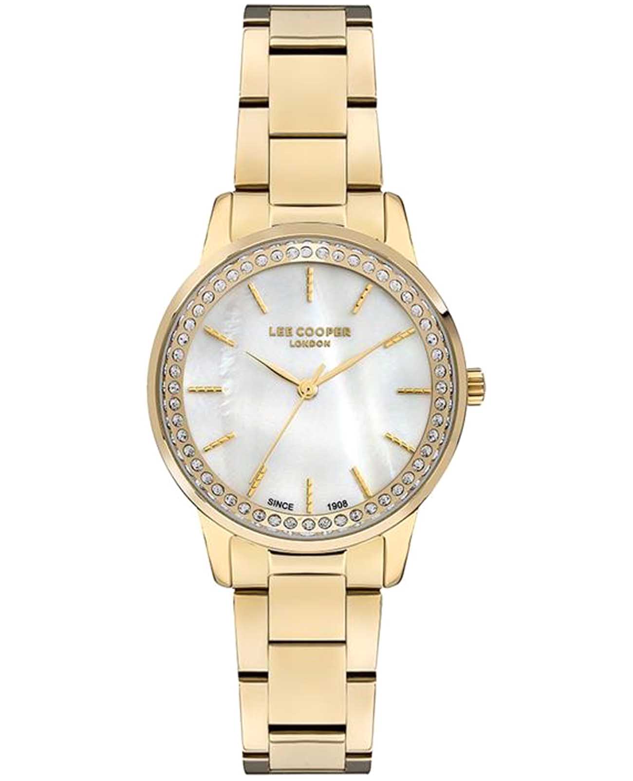 Женские часы Lee Cooper LC07229.120 — это стильное сочетание элегантности и современного дизайна. Круглый корпус диаметром 34 мм выполнен из суперметалла в золотом цвете с IP-покрытиемIP-покрытиеМетод ионного напыления. Демонстрирует повышенную устойчивость к истиранию, окислению и химическим веществам. Под воздействием высокого давления и температуры около 1500°C молекулы металла надёжно соединяются с частицами корпуса часов., а безельБезельВнешний ободок, закрепляющий стекло. В спортивных часах так называется поворотное кольцо с делениями на циферблате, выполняет роль таймера – замеряет отрезки времени на шкале. Неподвижный безель – элемент декора. Однонаправленно вращающийся безель на дайверских часах позволяет фиксировать моменты погружения и выныривания на поверхность. украшен кристаллами, придающими модели особый блеск. Перламутровый циферблат защищен минеральным стекломМинеральное стеклоМинеральное стекло представляет собой искусственно выращенный минерал кварца. Такое стекло отличается особой устойчивостью к повреждениям и царапинам. Уступает по некоторым качествам сапфировому стеклу., обеспечивающим устойчивость к царапинам. Часы оснащены надежным кварцевым механизмом, а металлический браслет с раскладной застёжкойРаскладная застёжкаТакой тип застёжки используется только на браслетах из металла. Она никогда не раскрывается полностью, происходит разделение на 2 и более частей. Раскладывающая застёжка снизит вероятность потери часов к минимуму. гарантирует комфортную посадку на запястье. Водозащита 30 метров защищает модель от случайных брызг и дождя. Lee Cooper — отличный выбор для тех, кто ценит утонченность и качество.