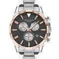 придаёт часам классический и современный вид. Чёрный циферблат оснащён дополнительными индикаторами и функцией хронографХронографФункция позволяет измерять отрезки времени с особой точностью: часы, минуты, секунды. Верным признаком хронографа является наличие на циферблате 3 дополнительных окошек-счётчиков., что позволяет измерять временные интервалы с высокой точностью. Стрелки и метки покрыты люминесцентным покрытиемЛюминесцентное покрытиеПозволяет считывать показания времени в темноте. Производители наносят на стрелки, часовые индексы, безель или поверхность циферблата светонакопительный состав, дающий холодное свечение., обеспечивая удобное считывание показаний в условиях недостаточного освещения. Циферблат защищён минеральным стекломМинеральное стеклоМинеральное стекло представляет собой искусственно выращенный минерал кварца. Такое стекло отличается особой устойчивостью к повреждениям и царапинам. Уступает по некоторым качествам сапфировому стеклу., устойчивым к царапинам. Часы работают на кварцевом механизме, обеспечивающем точность хода. Браслет из нержавеющей стали с раскладной застёжкойРаскладная застёжкаТакой тип застёжки используется только на браслетах из металла. Она никогда не раскрывается полностью, происходит разделение на 2 и более частей. Раскладывающая застёжка снизит вероятность потери часов к минимуму. гарантирует удобную посадку и надёжную фиксацию на запястье. Водозащита 30 метров защищает часы от брызг и дождя, делая их подходящими для повседневного использования.