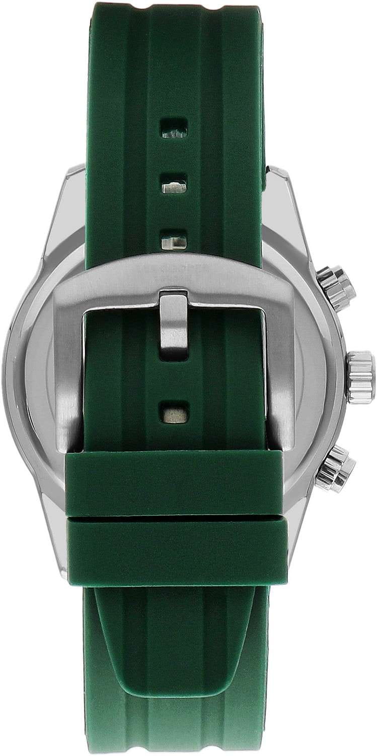 Мужские кварцевые часы Lee Cooper LC07628.377 — это мультифункциональный аксессуар с лаконичным дизайном. Изысканный корпус диаметром 44 мм выполнен из суперметалла серебристого цвета с поворотным безелемБезельВнешний ободок, закрепляющий стекло. В спортивных часах так называется поворотное кольцо с делениями на циферблате, выполняет роль таймера – замеряет отрезки времени на шкале. Неподвижный безель – элемент декора. Однонаправленно вращающийся безель на дайверских часах позволяет фиксировать моменты погружения и выныривания на поверхность. с IP-покрытиемIP-покрытиеМетод ионного напыления. Демонстрирует повышенную устойчивость к истиранию, окислению и химическим веществам. Под воздействием высокого давления и температуры около 1500°C молекулы металла надёжно соединяются с частицами корпуса часов.. Стильный циферблат оформлен изысканными индексами и дополнен окошками даты, дня недели и 24-часового индикатора. Циферблат защищён минеральным стекломМинеральное стеклоМинеральное стекло представляет собой искусственно выращенный минерал кварца. Такое стекло отличается особой устойчивостью к повреждениям и царапинам. Уступает по некоторым качествам сапфировому стеклу.. Стрелки и метки с люминесцентным покрытиемЛюминесцентное покрытиеПозволяет считывать показания времени в темноте. Производители наносят на стрелки, часовые индексы, безель или поверхность циферблата светонакопительный состав, дающий холодное свечение., обеспечивающим хорошую читаемость в темноте. Функция второго часового поясаВторой часовой поясФункция, позволяющая отображать время двух часовых поясов одновременно. делает часы удобными для путешественников. Часы оснащены надежным каучуковым ремешком с классической пряжкой, что обеспечивает удобство и комфорт. Водонепроницаемость 50 м позволяет использовать часы для повседневного ношения. Универсальный выбор для тех, кто ценит функциональность и надёжность.