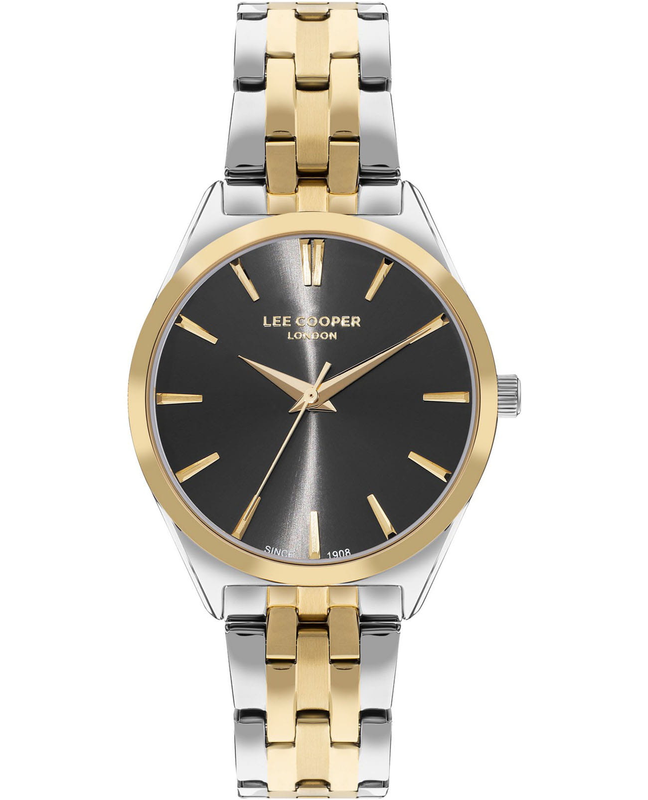 Женские часы Lee Cooper LC07833.260 — это стильное сочетание элегантности и современного дизайна. Изысканный круглый корпус диаметром 34 мм выполнен из суперметалла с неподвижным безелемБезельВнешний ободок, закрепляющий стекло. В спортивных часах так называется поворотное кольцо с делениями на циферблате, выполняет роль таймера – замеряет отрезки времени на шкале. Неподвижный безель – элемент декора. Однонаправленно вращающийся безель на дайверских часах позволяет фиксировать моменты погружения и выныривания на поверхность. с IP-покрытиемIP-покрытиеМетод ионного напыления. Демонстрирует повышенную устойчивость к истиранию, окислению и химическим веществам. Под воздействием высокого давления и температуры около 1500°C молекулы металла надёжно соединяются с частицами корпуса часов. золотого цвета, что придает модели особый блеск. Черный циферблат защищен минеральным стекломМинеральное стеклоМинеральное стекло представляет собой искусственно выращенный минерал кварца. Такое стекло отличается особой устойчивостью к повреждениям и царапинам. Уступает по некоторым качествам сапфировому стеклу., обеспечивающим устойчивость к царапинам. Метки в виде лаконичных штрихов. Часы оснащены надежным кварцевым механизмом, а изящный стальной браслет с частичным IP-покрытиемIP-покрытиеМетод ионного напыления. Демонстрирует повышенную устойчивость к истиранию, окислению и химическим веществам. Под воздействием высокого давления и температуры около 1500°C молекулы металла надёжно соединяются с частицами корпуса часов. на раскладной застёжкеРаскладная застёжкаТакой тип застёжки используется только на браслетах из металла. Она никогда не раскрывается полностью, происходит разделение на 2 и более частей. Раскладывающая застёжка снизит вероятность потери часов к минимуму. гарантирует комфортную посадку на запястье. Водозащита 30 метров защищает модель от случайных брызг и дождя. Lee Cooper — отличный выбор для тех, кто ценит утонченность и качество.