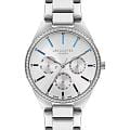 Женские часы Lee Cooper LC07863.390 — это стильное сочетание элегантности и современного дизайна. Круглый корпус диаметром 34 мм выполнен из суперметалла, а неподвижный безельБезельВнешний ободок, закрепляющий стекло. В спортивных часах так называется поворотное кольцо с делениями на циферблате, выполняет роль таймера – замеряет отрезки времени на шкале. Неподвижный безель – элемент декора. Однонаправленно вращающийся безель на дайверских часах позволяет фиксировать моменты погружения и выныривания на поверхность. украшен цирконами, придающими модели особый блеск. Серебристый циферблат защищен минеральным стекломМинеральное стеклоМинеральное стекло представляет собой искусственно выращенный минерал кварца. Такое стекло отличается особой устойчивостью к повреждениям и царапинам. Уступает по некоторым качествам сапфировому стеклу., обеспечивающим устойчивость к царапинам. Метки в виде штрихов. Часы оснащены надежным кварцевым механизмом, а металлический браслет на раскладной застёжкеРаскладная застёжкаТакой тип застёжки используется только на браслетах из металла. Она никогда не раскрывается полностью, происходит разделение на 2 и более частей. Раскладывающая застёжка снизит вероятность потери часов к минимуму. гарантирует комфортную посадку на запястье. Мультифункциональная модель с индикацией даты, дня недели, с дополнительным 24-х часовым индикатором. Водозащита 30 метров защищает модель от случайных брызг и дождя. Lee Cooper — отличный выбор для тех, кто ценит утонченность и качество.