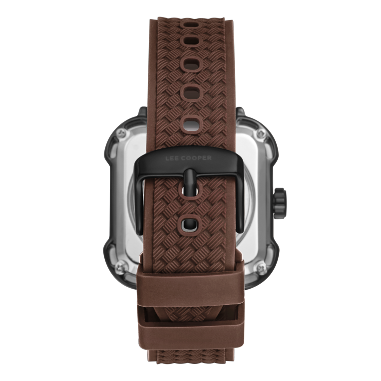 Мужские наручные часы Lee Cooper LC08072.644 из коллекции Classic оснащены автоматическим механизмом калибра G3265ZH, который заряжается от движения руки и обеспечивает надежность и точность хода. Корпус часов выполнен из металла с черным с IP-покрытиемIP-покрытиеМетод ионного напыления. Демонстрирует повышенную устойчивость к истиранию, окислению и химическим веществам. Под воздействием высокого давления и температуры около 1500°C молекулы металла надёжно соединяются с частицами корпуса часов., что придает модели современный и стильный вид. Циферблат имеет уникальный скелетонизированный дизайн, позволяющий наблюдать за работой механизма, что делает часы не только функциональными, но и визуально привлекательными. Для защиты циферблата используется минеральное стеклоМинеральное стеклоМинеральное стекло представляет собой искусственно выращенный минерал кварца. Такое стекло отличается особой устойчивостью к повреждениям и царапинам. Уступает по некоторым качествам сапфировому стеклу., устойчивое к царапинам и механическим повреждениям. Корпус имеет размеры 44 x 49 мм. Ремешок изготовлен из каучука коричневого цвета и гармонично дополняет общий дизайн модели. Стандартная застежка. Часы обладают водонепроницаемостью до 50 метров (5 АТМ), что позволяет использовать их в повседневной жизни, включая контакт с водой при мытье рук или дожде. Эти часы станут идеальным выбором для мужчин, ценящих стиль, качество и функциональность.
