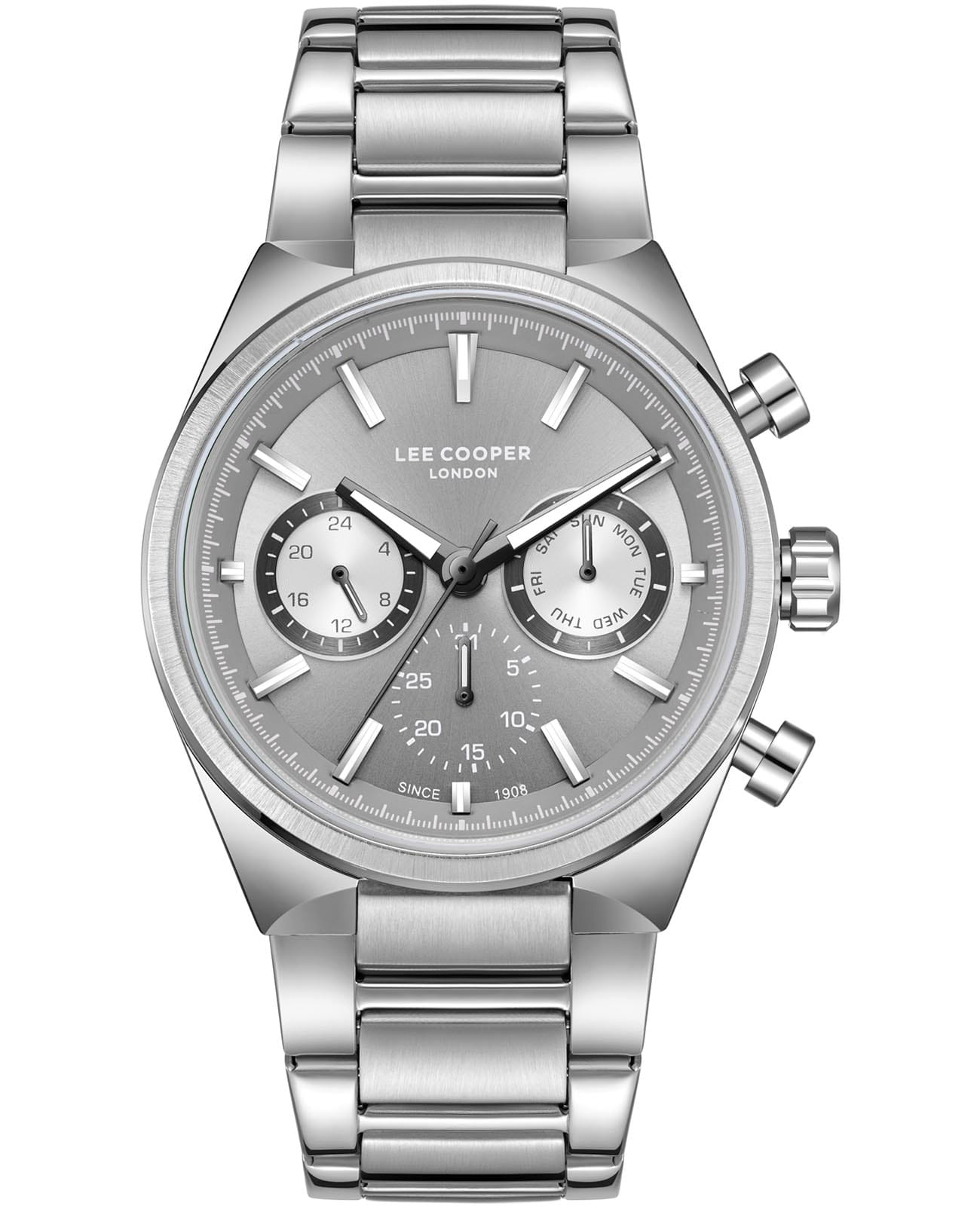 Мужские наручные часы Lee Cooper LC08174.360 оснащены кварцевым механизмом, обеспечивающий высокую точность хода и надежность. Элегантный корпус часов выполнен из суперметалла серебристого цвета, что делает их устойчивыми к внешним воздействиям и придает благородный вид. Циферблат украшен классическими стрелками и метками с люминесцентным покрытиемЛюминесцентное покрытиеПозволяет считывать показания времени в темноте. Производители наносят на стрелки, часовые индексы, безель или поверхность циферблата светонакопительный состав, дающий холодное свечение., гармонично дополняющим общий дизайн модели. Для защиты циферблата используется минеральное стеклоМинеральное стеклоМинеральное стекло представляет собой искусственно выращенный минерал кварца. Такое стекло отличается особой устойчивостью к повреждениям и царапинам. Уступает по некоторым качествам сапфировому стеклу., устойчивое к царапинам и механическим повреждениям. Корпус имеет круглую форму диаметром 42 мм, что делает часы заметными и подходящими. Браслет из стали оснащен раскладной застёжкойРаскладная застёжкаТакой тип застёжки используется только на браслетах из металла. Она никогда не раскрывается полностью, происходит разделение на 2 и более частей. Раскладывающая застёжка снизит вероятность потери часов к минимуму., обеспечивающим комфортное и безопасное ношение. Вынесенный циферблат с 24-х часовым указателем времени, индикацией даты и дня недели. Часы обладают водонепроницаемостью до 50 метров (5 АТМ), что позволяет использовать их в повседневной жизни, включая контакт с водой при мытье рук или дожде. Эти часы станут идеальным выбором для мужчин, ценящих стиль, качество и функциональность.