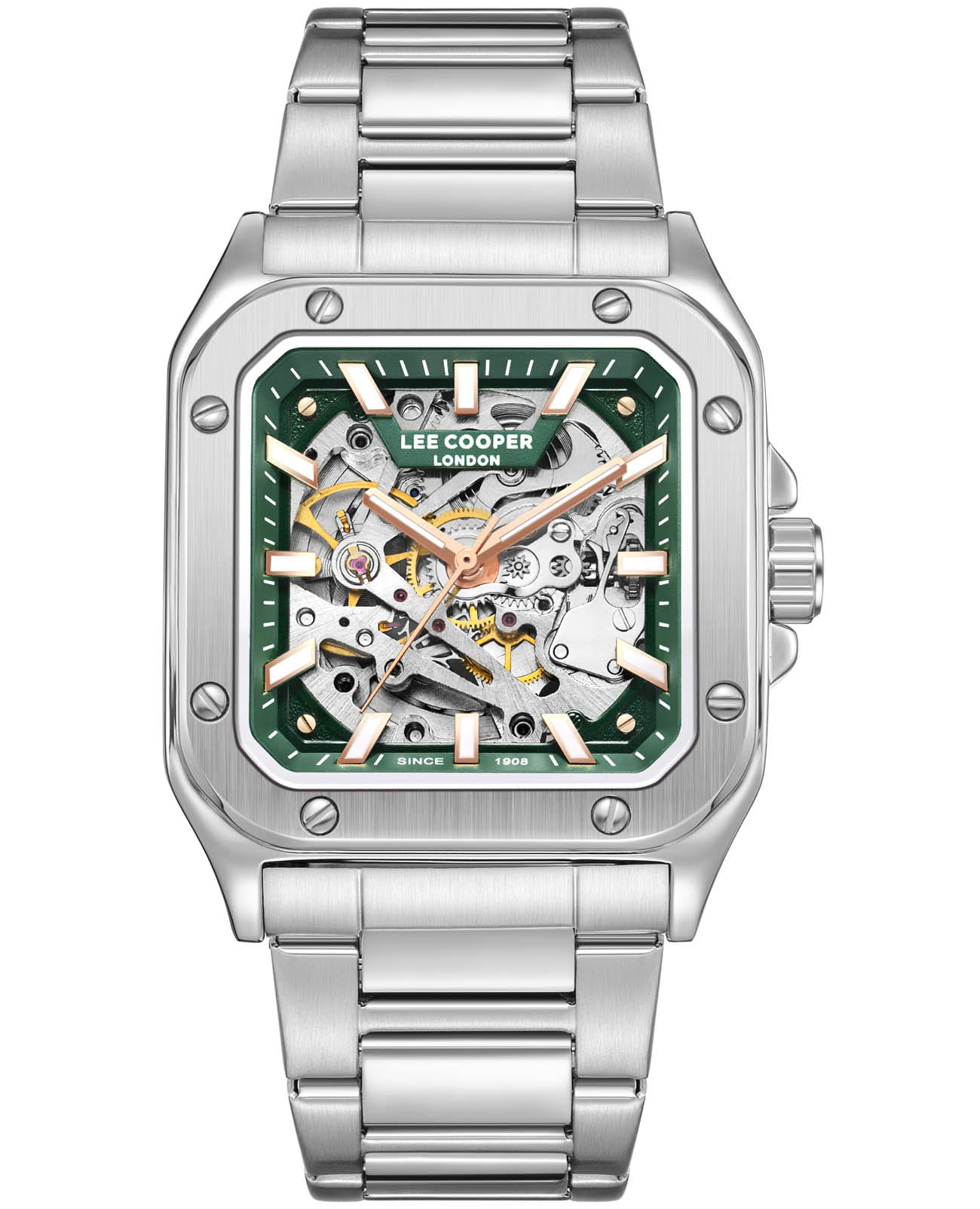 Мужские наручные часы-скелетоны Lee Cooper LC08198.370 механические с автоподзаводом, обеспечивающие высокую точность хода и надежность. Корпус часов выполнен из суперметалла серебристого цвета, размером 39 мм X 48 мм, что делает их устойчивыми к внешним воздействиям и придает благородный вид. Циферблат украшен классическими стрелками и метками с люминесцентным покрытиемЛюминесцентное покрытиеПозволяет считывать показания времени в темноте. Производители наносят на стрелки, часовые индексы, безель или поверхность циферблата светонакопительный состав, дающий холодное свечение., гармонично дополняющим общий дизайн модели. Для защиты циферблата используется минеральное стеклоМинеральное стеклоМинеральное стекло представляет собой искусственно выращенный минерал кварца. Такое стекло отличается особой устойчивостью к повреждениям и царапинам. Уступает по некоторым качествам сапфировому стеклу., устойчивое к царапинам и механическим повреждениям. Браслет из стали оснащен раскладной застёжкойРаскладная застёжкаТакой тип застёжки используется только на браслетах из металла. Она никогда не раскрывается полностью, происходит разделение на 2 и более частей. Раскладывающая застёжка снизит вероятность потери часов к минимуму., обеспечивающим комфортное и безопасное ношение. Часы обладают водонепроницаемостью до 50 метров (5 АТМ), что позволяет использовать их в повседневной жизни, включая контакт с водой при мытье рук или дожде. Эти часы станут идеальным выбором для мужчин, ценящих стиль, качество и функциональность.