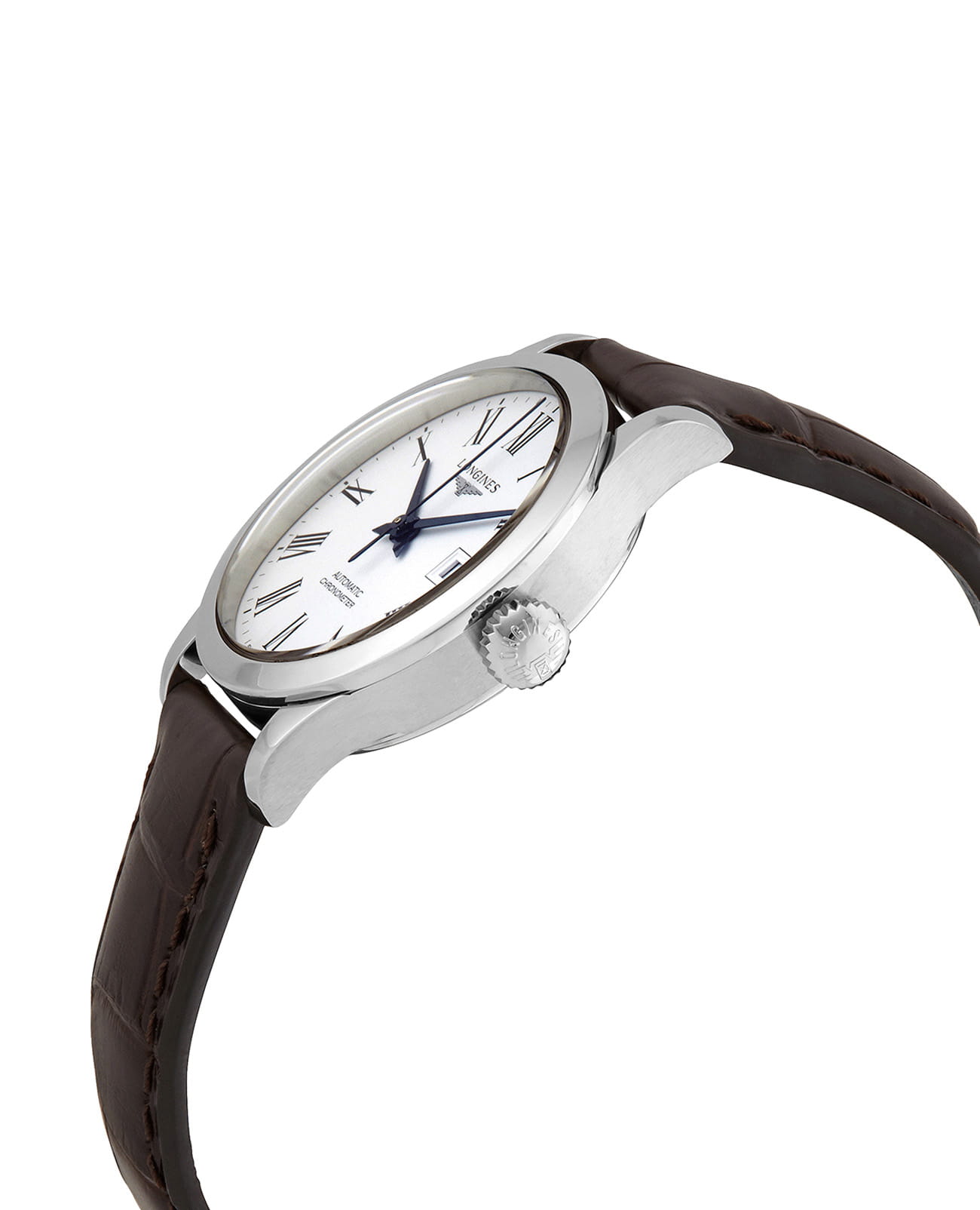 Женские швейцарские механические часы с автоподзаводом Longines Record L2.321.4.11.2. Сапфировое стеклоСапфировое стеклоПрочный и надёжный материал из кристалла сапфира синтетического происхождения, характеризующийся особой твёрдостью и устойчивостью к царапинам и повреждениям. устойчивое к появлению царапин, обладающее высокой прозрачностью. Корпус часов из нержавеющей стали. Метки в виде римских цифр. Окошко даты в положении 3 часов. Прозрачная задняя крышка. Класс водозащиты: 30 метров, позволит защитить корпус от случайных брызг или капель дождя. Ремешок из кожи на раскладной застёжкеРаскладная застёжкаТакой тип застёжки используется только на браслетах из металла. Она никогда не раскрывается полностью, происходит разделение на 2 и более частей. Раскладывающая застёжка снизит вероятность потери часов к минимуму..