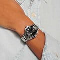 Женские швейцарские часы для дайвинга Longines HydroConquest L3.370.4.56.6, кварцевый механизм с высокой точностью. Сапфировое стеклоСапфировое стеклоПрочный и надёжный материал из кристалла сапфира синтетического происхождения, характеризующийся особой твёрдостью и устойчивостью к царапинам и повреждениям. с многослойным антибликовым покрытием с обеих сторон, устойчивое к появлению царапин, обладающее высокой прозрачностью. Корпус часов изготовлен из стали. Вращающийся безельБезельВнешний ободок, закрепляющий стекло. В спортивных часах так называется поворотное кольцо с делениями на циферблате, выполняет роль таймера – замеряет отрезки времени на шкале. Неподвижный безель – элемент декора. Однонаправленно вращающийся безель на дайверских часах позволяет фиксировать моменты погружения и выныривания на поверхность. из стали и керамики, защищенный от царапин, никогда не изнашивается и не выцветает. Стрелки и метки с люминесцентным покрытиемЛюминесцентное покрытиеПозволяет считывать показания времени в темноте. Производители наносят на стрелки, часовые индексы, безель или поверхность циферблата светонакопительный состав, дающий холодное свечение.. Окошко даты находится в положении 3 часов. Класс водозащиты: 300 метров, позволит плавать, нырять и заниматься другими водными видами спорта. Стальной браслет на раскладной застёжкеРаскладная застёжкаТакой тип застёжки используется только на браслетах из металла. Она никогда не раскрывается полностью, происходит разделение на 2 и более частей. Раскладывающая застёжка снизит вероятность потери часов к минимуму..