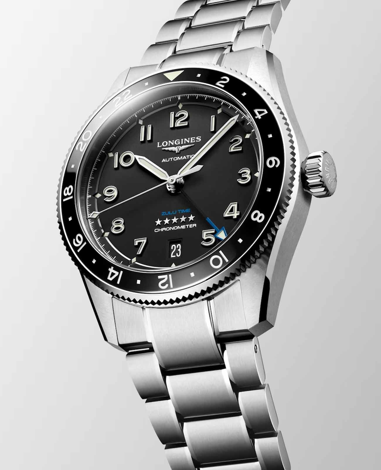 Мужские швейцарские механические часы Longines Spirit L3.802.4.53.6. Сапфировое стеклоСапфировое стеклоПрочный и надёжный материал из кристалла сапфира синтетического происхождения, характеризующийся особой твёрдостью и устойчивостью к царапинам и повреждениям. с многослойным антибликовым покрытием с обеих сторон, устойчивое к появлению царапин, обладающее высокой прозрачностью. Корпус часов изготовлен из стали. Вращающийся безельБезельВнешний ободок, закрепляющий стекло. В спортивных часах так называется поворотное кольцо с делениями на циферблате, выполняет роль таймера – замеряет отрезки времени на шкале. Неподвижный безель – элемент декора. Однонаправленно вращающийся безель на дайверских часах позволяет фиксировать моменты погружения и выныривания на поверхность. из стали и керамики, защищенный от царапин, никогда не изнашивается и не выцветает. Стрелки и метки с люминесцентным покрытиемЛюминесцентное покрытиеПозволяет считывать показания времени в темноте. Производители наносят на стрелки, часовые индексы, безель или поверхность циферблата светонакопительный состав, дающий холодное свечение.. Класс водозащиты: 100 метров, позволит плавать, нырять и заниматься другими водными видами спорт. Стальной браслет на раскладной застёжкеРаскладная застёжкаТакой тип застёжки используется только на браслетах из металла. Она никогда не раскрывается полностью, происходит разделение на 2 и более частей. Раскладывающая застёжка снизит вероятность потери часов к минимуму..