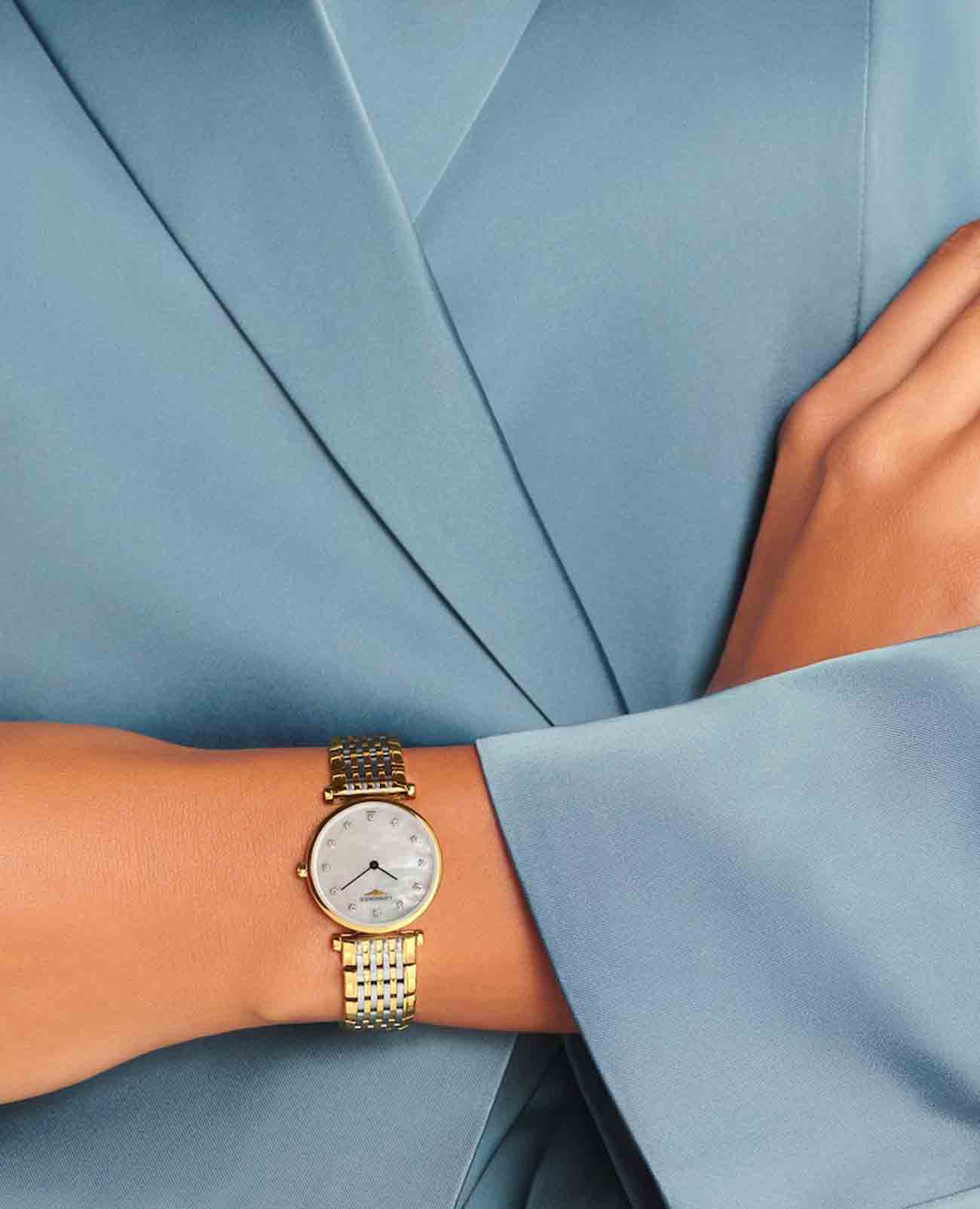 Водозащита до 3 бар позволяет носить эти часы в любых условиях, будь то прогулка по городу или отдых на природе. Каждая деталь часов Longines La Grande Classique L4.209.2.87.7 продумана до мелочей, что делает их идеальным выбором для тех, кто ценит качество, стиль и надежность. Стальной браслет c PVD-покрытиемPVDУльтратонкое покрытие наносится в технике вакуумного напыления, сочетает в себе нитрид титана особой прочности со слоем золота или оксида хрома. Несёт в себе декоративную или защитную функцию. на застёжке «бабочка» с кнопкамиЗастёжка "бабочка"Такой вид застёжки дополняется предохранителями, помогающими избежать случайного раскрытия браслета. Обладают изящным исполнением. не только выглядит стильно, но и обеспечивает надежную фиксацию на запястье, позволяя вам наслаждаться красотой и функциональностью этих часов в любой ситуации.