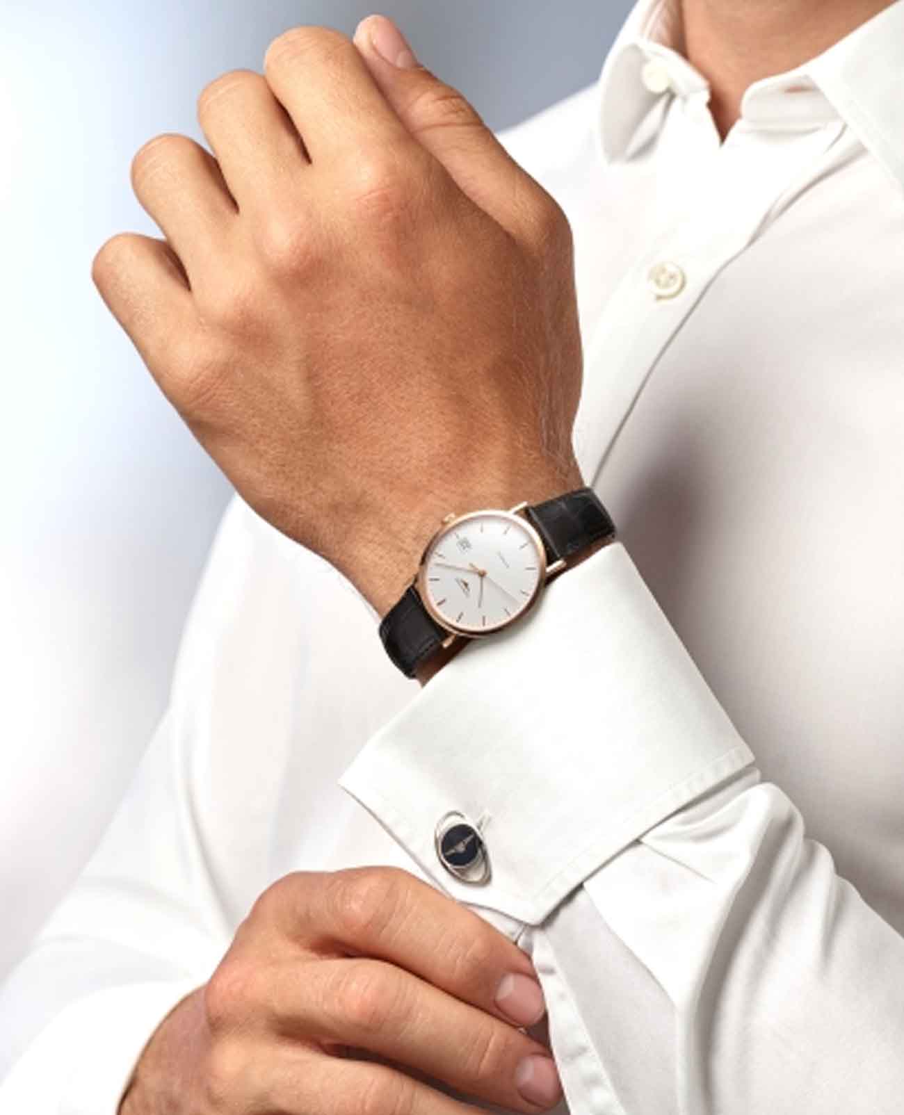 Швейцарские механические часы с автоподзаводом Longines Elegant Collection L4.378.8.12.4. Сапфировое стеклоСапфировое стеклоПрочный и надёжный материал из кристалла сапфира синтетического происхождения, характеризующийся особой твёрдостью и устойчивостью к царапинам и повреждениям. устойчивое к появлению царапин, обладающее высокой прозрачностью. Корпус изготовлен из 18-каратного золота18-каратное золотоОбозначение по каратной системе пробирования, оно показывает, сколько драгоценного металла содержится в изделии. 18 карат - в составе 75% чистого золота, соответствует 750 пробе.