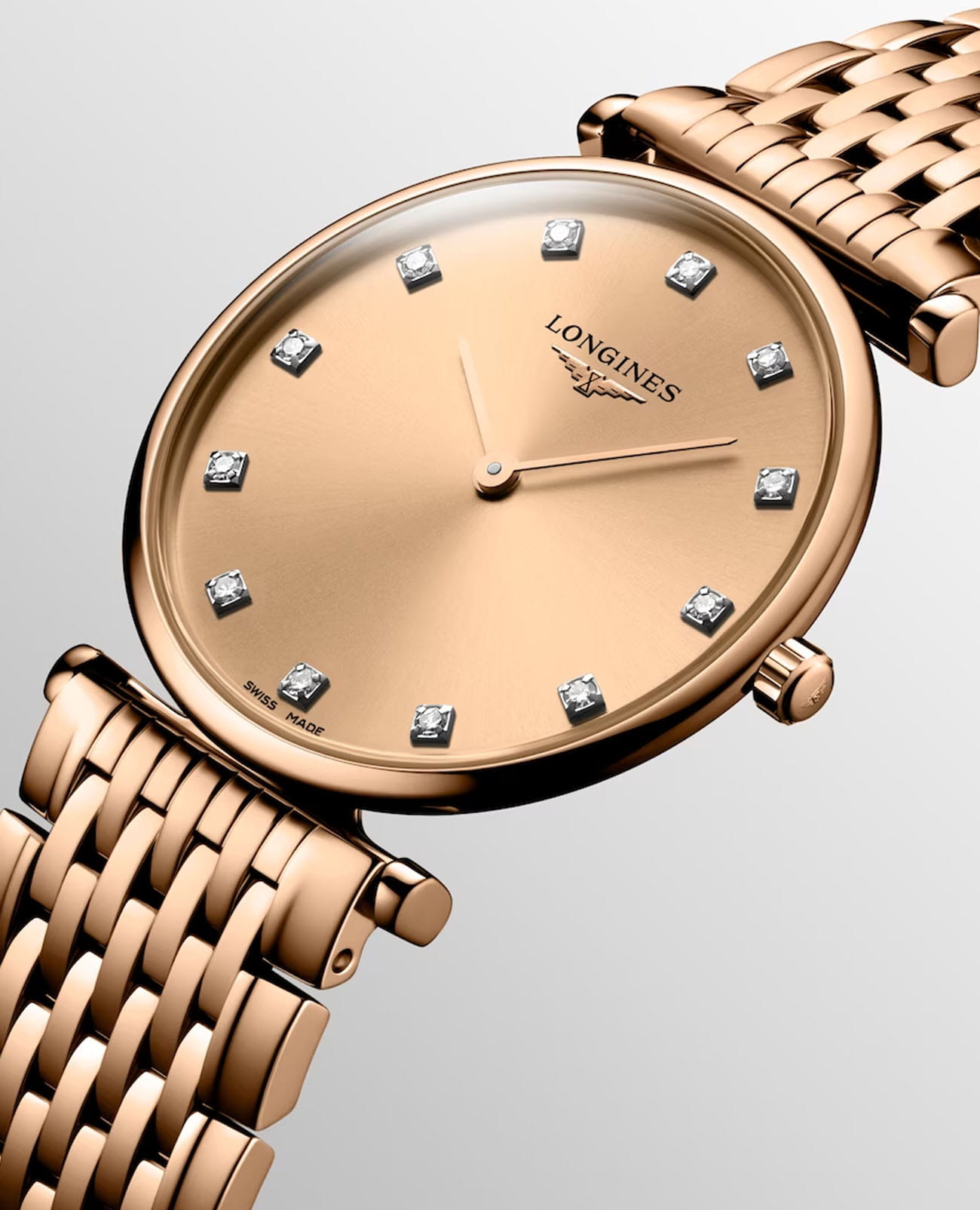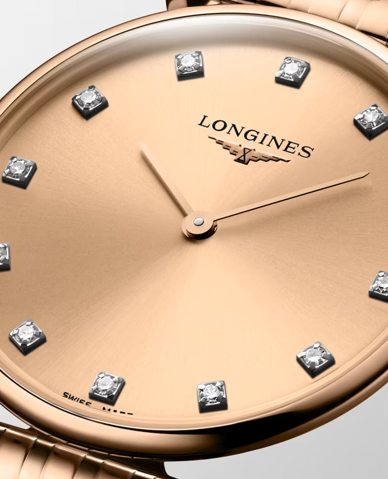 Женские швейцарские часы Longines La Grande Classique L4.512.1.90.8, кварцевый механизм с высокой точностью. Сапфировое стеклоСапфировое стеклоПрочный и надёжный материал из кристалла сапфира синтетического происхождения, характеризующийся особой твёрдостью и устойчивостью к царапинам и повреждениям. устойчивое к появлению царапин, обладающее высокой прозрачностью. Корпус часов изготовлен из стали с PVD-покрытиемPVDУльтратонкое покрытие наносится в технике вакуумного напыления, сочетает в себе нитрид титана особой прочности со слоем золота или оксида хрома. Несёт в себе декоративную или защитную функцию.. Циферблат дополнен 12 бриллиантами группы Top Wesselton VS-SI общим весом 0.081 карата. Класс водозащиты: 30 метров, позволит защитить корпус от случайных брызг или капель дождя. Браслет из стали с PVD-покрытиемPVDУльтратонкое покрытие наносится в технике вакуумного напыления, сочетает в себе нитрид титана особой прочности со слоем золота или оксида хрома. Несёт в себе декоративную или защитную функцию. на застёжке «бабочка» с кнопкамиЗастёжка "бабочка"Такой вид застёжки дополняется предохранителями, помогающими избежать случайного раскрытия браслета. Обладают изящным исполнением. .