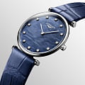 Женские швейцарские часы Longines La Grande Classique L4.512.4.81.2, кварцевый механизм с высокой точностью. Сапфировое стеклоСапфировое стеклоПрочный и надёжный материал из кристалла сапфира синтетического происхождения, характеризующийся особой твёрдостью и устойчивостью к царапинам и повреждениям. устойчивое к появлению царапин, обладающее высокой прозрачностью. Корпус часов изготовлен из стали. Циферблат с 12 бриллиантами группы Top Wesselton VS-SI общим весом 0.081 карата. Класс водозащиты: 30 метров, позволит защитить корпус от случайных брызг или капель дождя. Ремешок синего цвета из кожи аллигатора, с пряжкой.