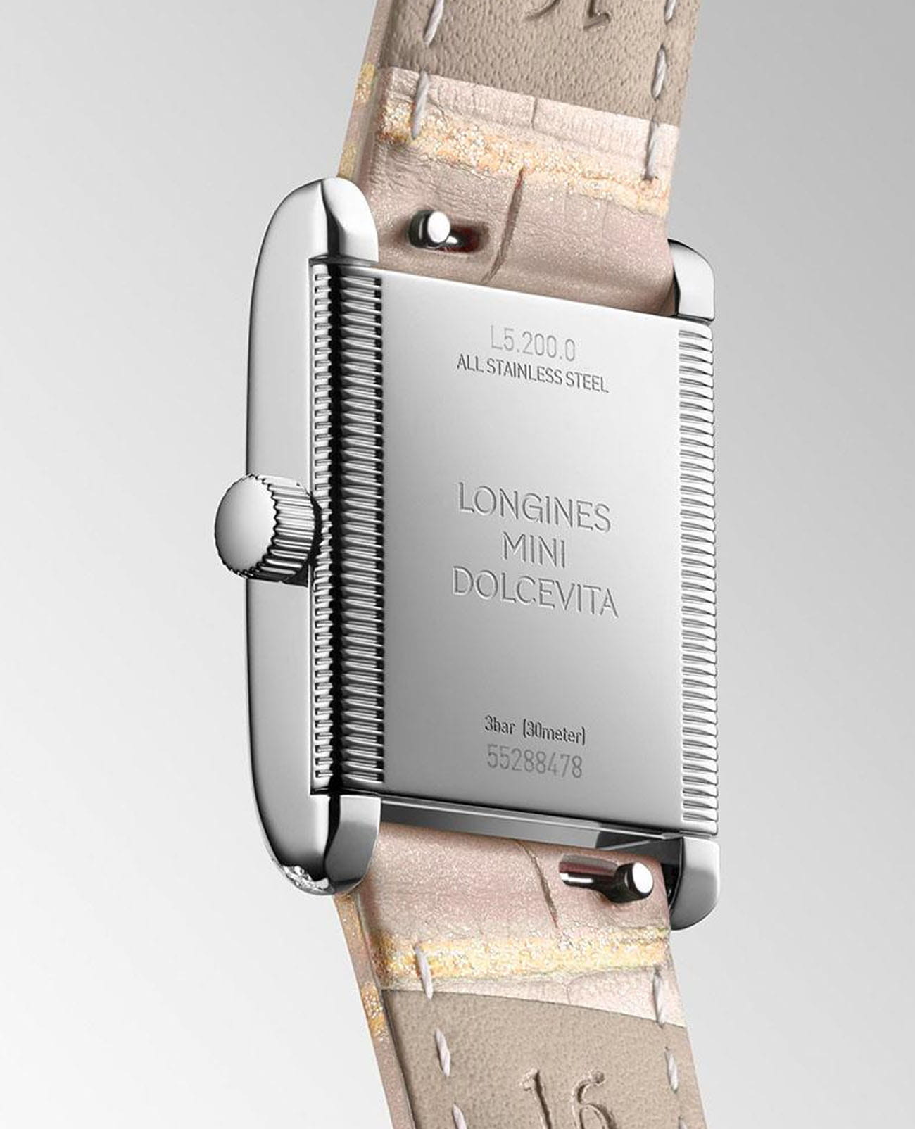 Женские швейцарские часы Longines DolceVita L5.200.0.99.2, кварцевый механизм с высокой точностью. Сапфировое стеклоСапфировое стеклоПрочный и надёжный материал из кристалла сапфира синтетического происхождения, характеризующийся особой твёрдостью и устойчивостью к царапинам и повреждениям. устойчивое к появлению царапин, обладающее высокой прозрачностью. Корпус инкрустирован 38 бриллиантами IF-VVS Top Wesselton. Циферблат украшен римскими цифрами. Малая секундная стрелка в положении 6 часов. Класс водозащиты: 30 метров, позволит защитить корпус от случайных брызг или капель дождя. Ремешок из кожи аллигатора на стандартной застежке.