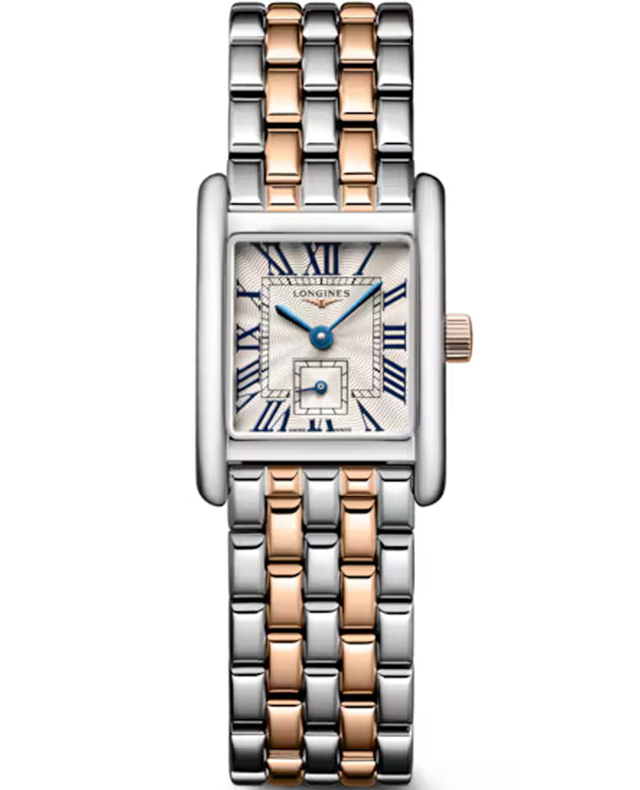 Женские изысканные швейцарские часы Longines DolceVita L5.200.5.71.7, кварцевый механизм с высокой точностью. Эти часы обладают сапфировым стекломСапфировое стеклоПрочный и надёжный материал из кристалла сапфира синтетического происхождения, характеризующийся особой твёрдостью и устойчивостью к царапинам и повреждениям., многослойное антибликовое покрытиеАнтибликовое покрытиеСлой оксида металла в 0,13-0,3 микрон, благодаря которому стекло часов не бликует и не отражает свет. Антибликовое покрытие уменьшает отражение света в 10 раз, обеспечивая отличную читаемость показателей циферблата. обеспечивает превосходную прозрачность и устойчивость к царапинам, словно невидимый щит, оберегающий ваш драгоценный аксессуар.  Элегантный корпус часов с браслетом из нержавеющей стали и розового золота. Стальной браслет на застёжке-бабочке с кнопкамиЗастёжка "бабочка"Такой вид застёжки дополняется предохранителями, помогающими избежать случайного раскрытия браслета. Обладают изящным исполнением. . Стрелки подчеркивают статус и утонченность модели. Водозащита класса 30 метров гарантирует надежную защиту от случайных брызг и капель дождя, позволяя вам наслаждаться часами в любых погодных условиях. Эти часы станут не только функциональным аксессуаром, но и настоящим произведением искусства, достойным внимания и восхищения. Longines L5.200.5.71.7 – это воплощение швейцарской точности, надежности и элегантности, которое будет радовать вас своим безупречным стилем и непревзойденным качеством на протяжении многих лет.застежке.