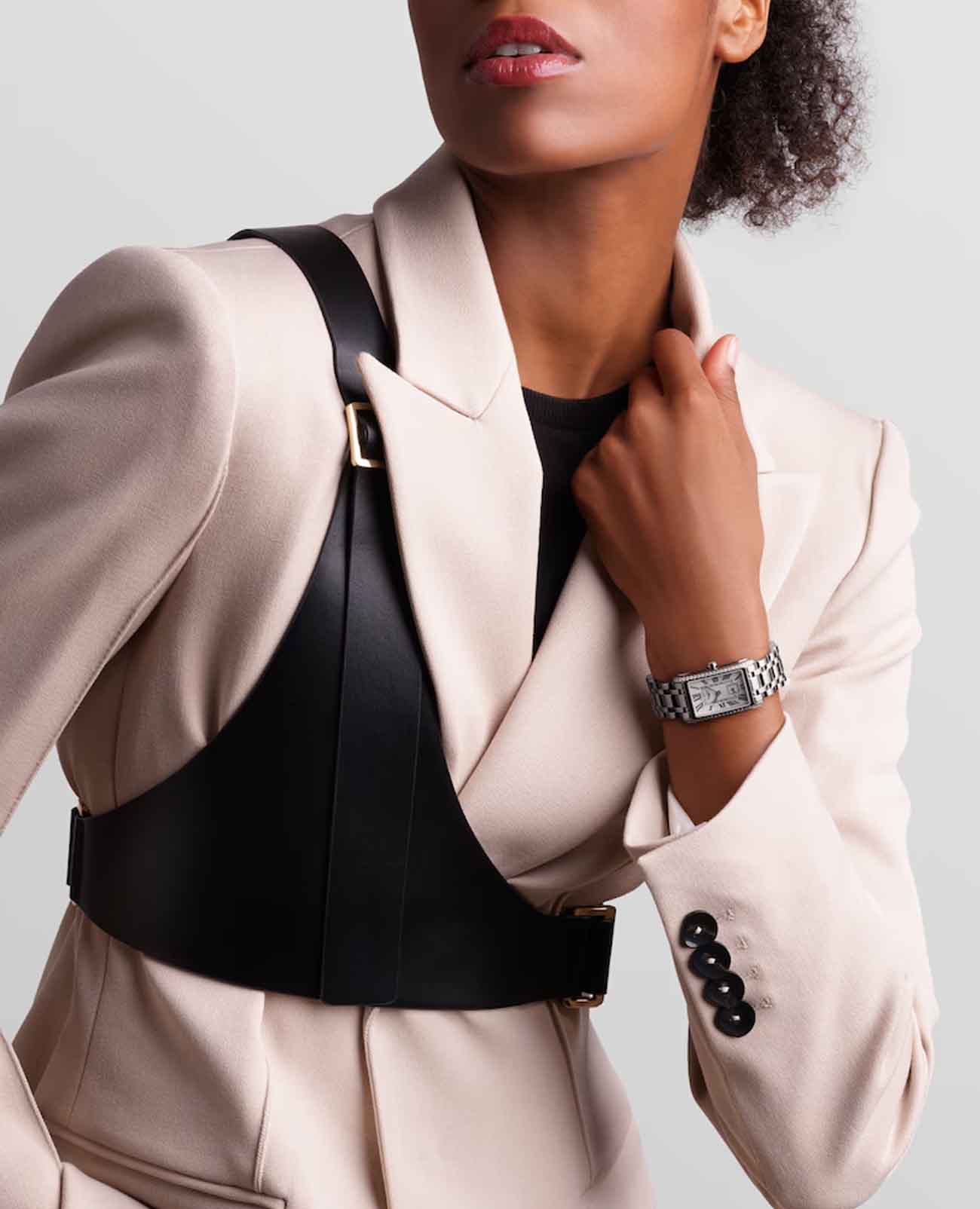 Сапфировое стеклоСапфировое стеклоПрочный и надёжный материал из кристалла сапфира синтетического происхождения, характеризующийся особой твёрдостью и устойчивостью к царапинам и повреждениям., словно прозрачный щит, оберегает циферблат от царапин, сохраняя его первозданную красоту. Корпус часов, изготовленный из благородной нержавеющей стали, украшен 46 бриллиантами группы Top Wesselton IF-VVS общим весом 0.552 карата, придавая им неповторимый блеск и изысканность.